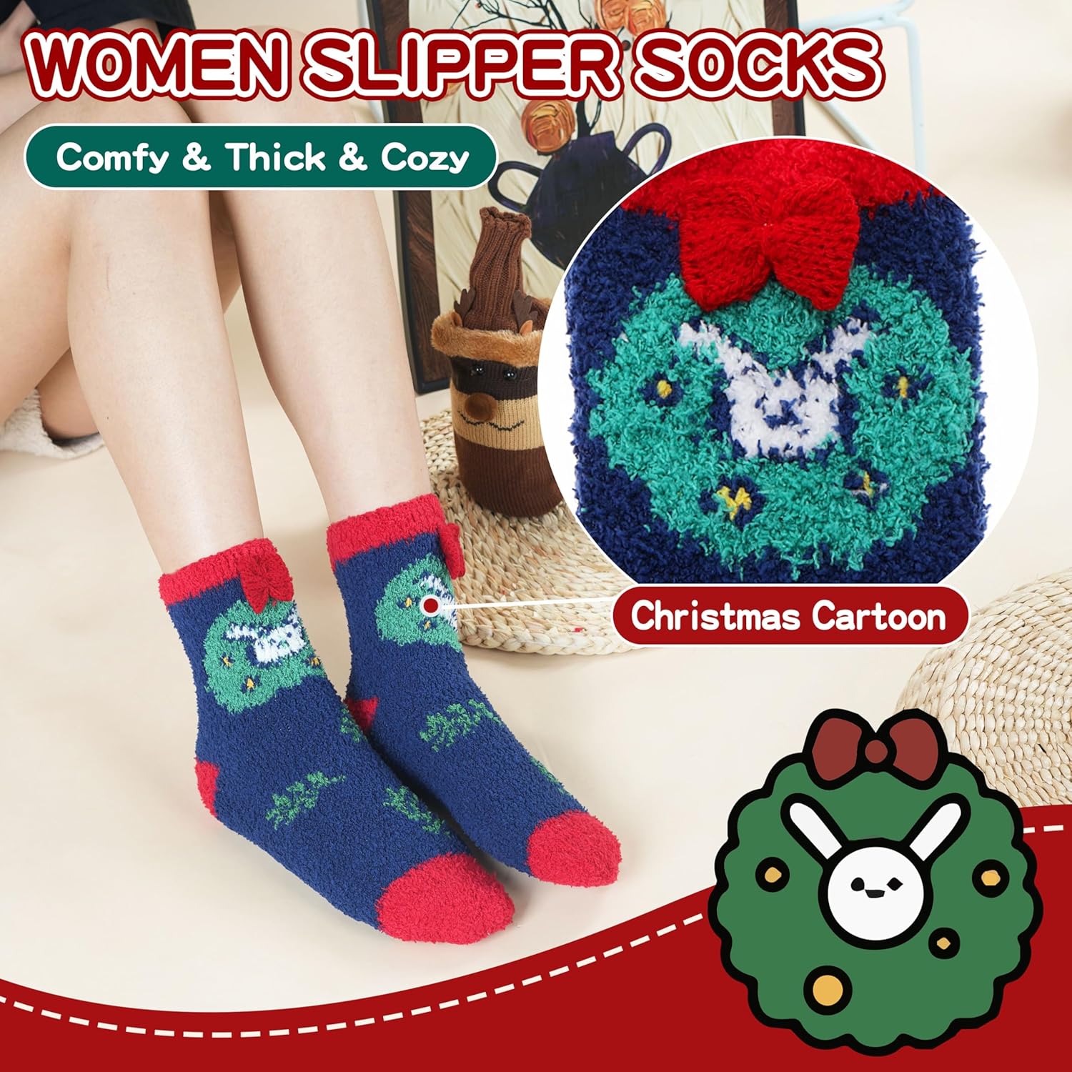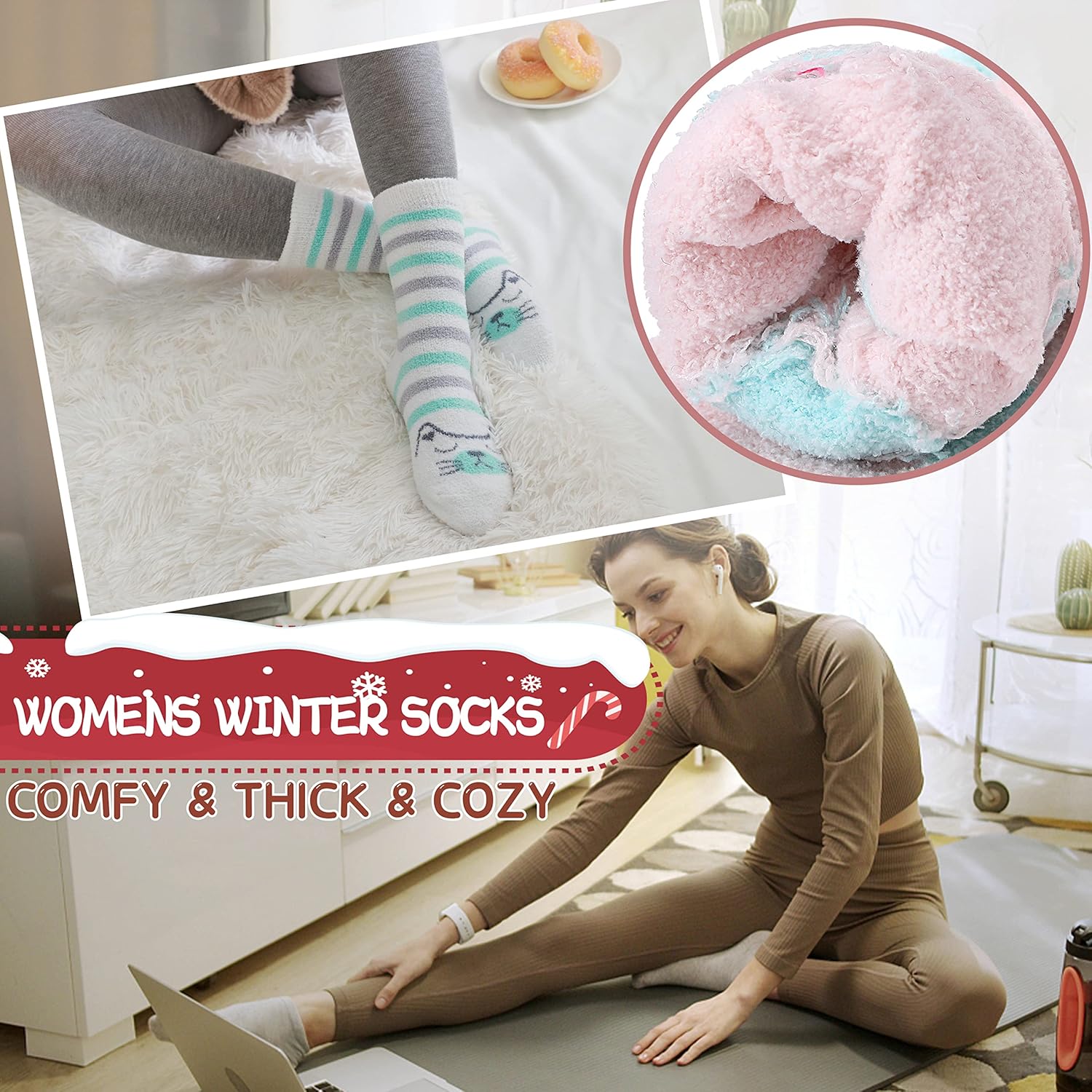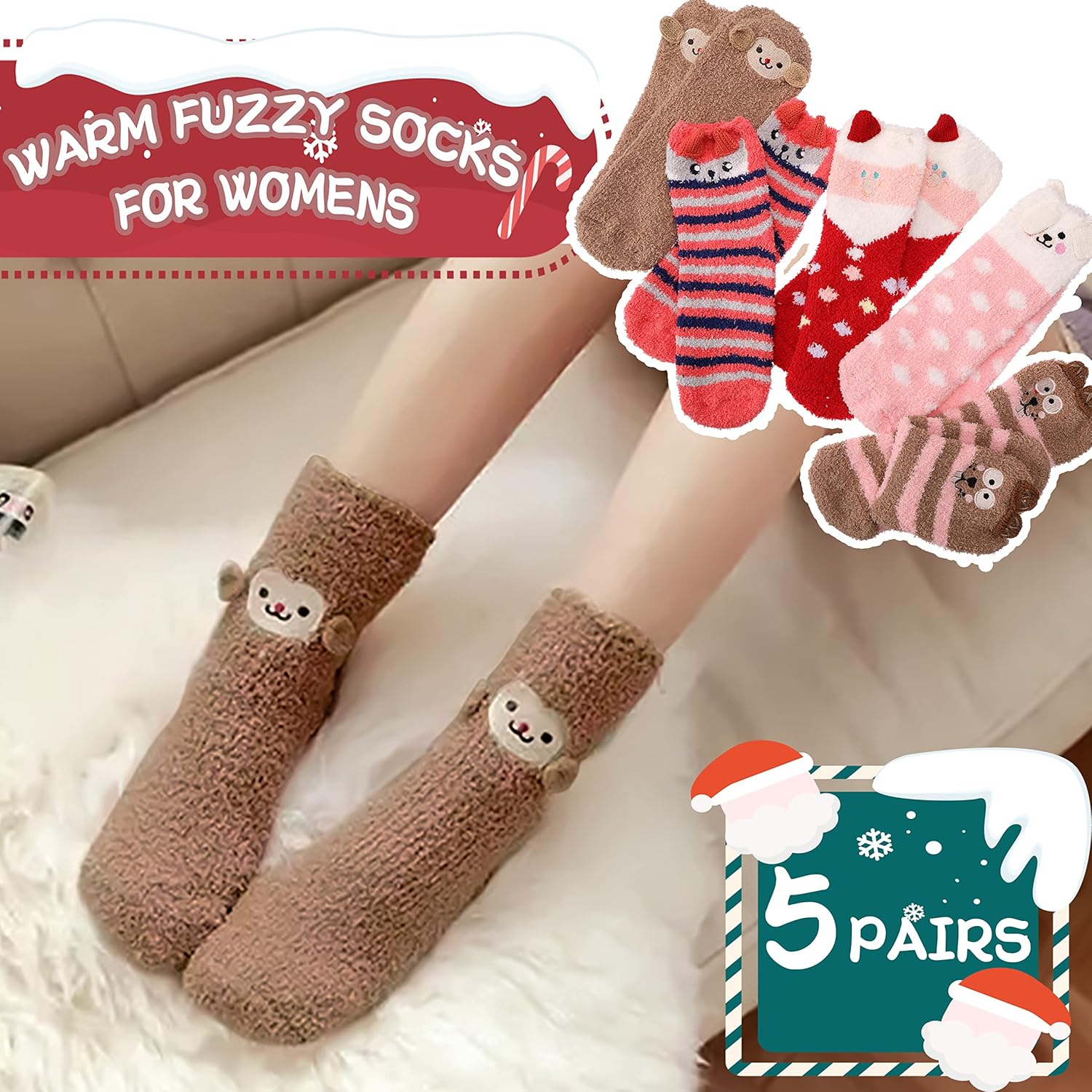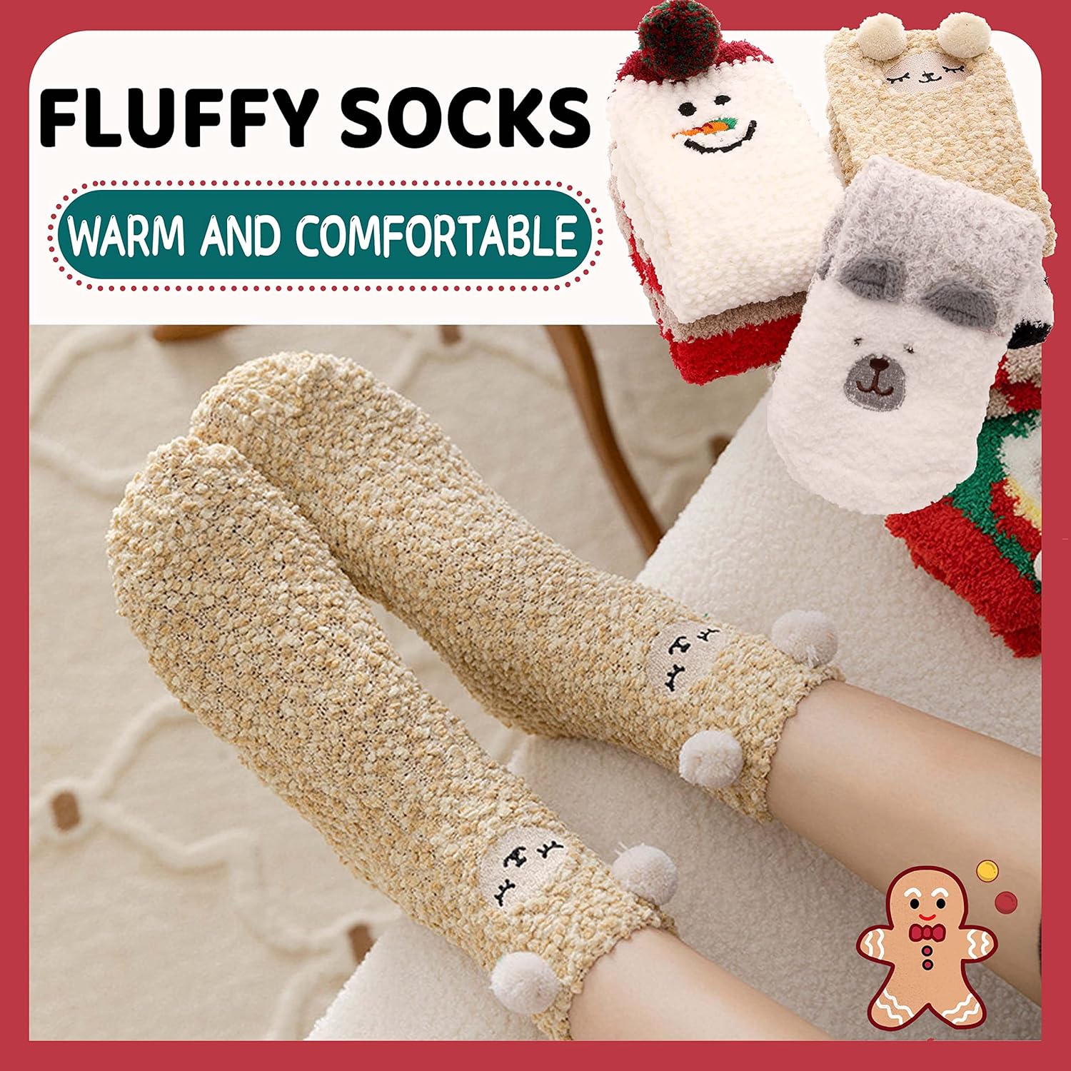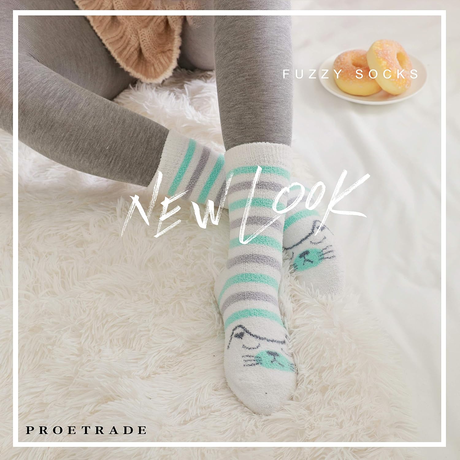 ProEtrade Chaussettes Floues pour Femmes Adolescentes Filles Douces Noël Confortables Chaussons Cabane Doux Hiver Chaleureux Chaussettes en Polaire