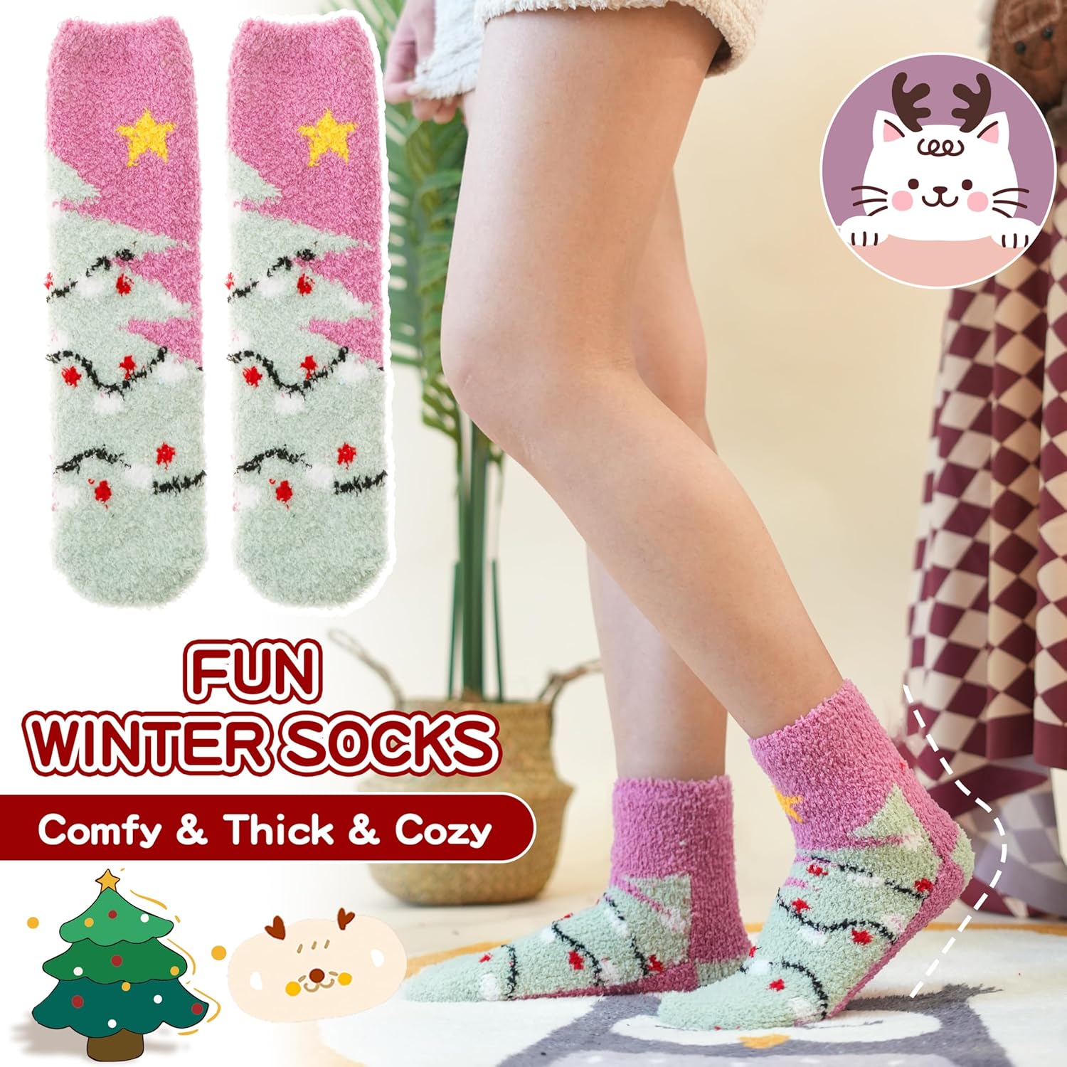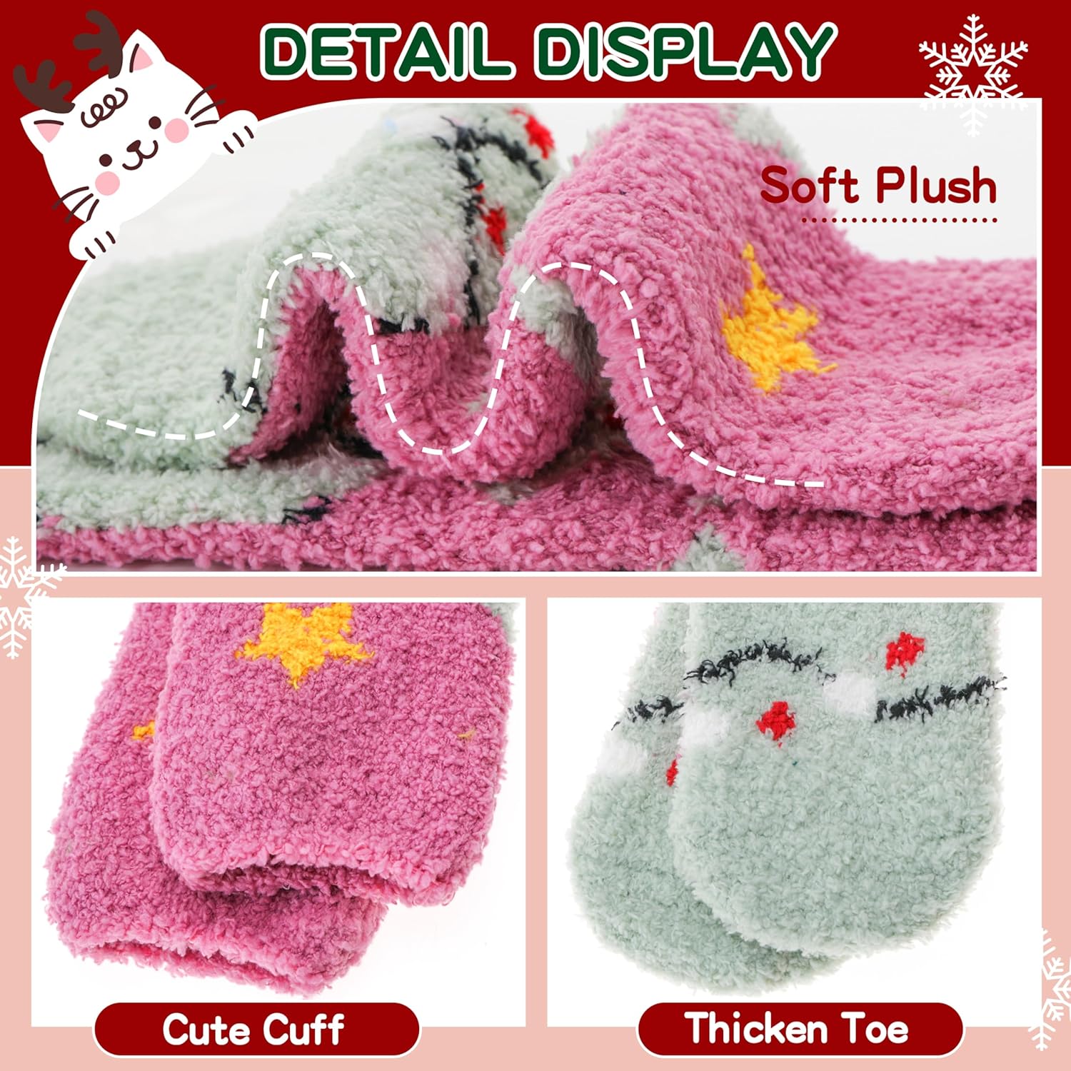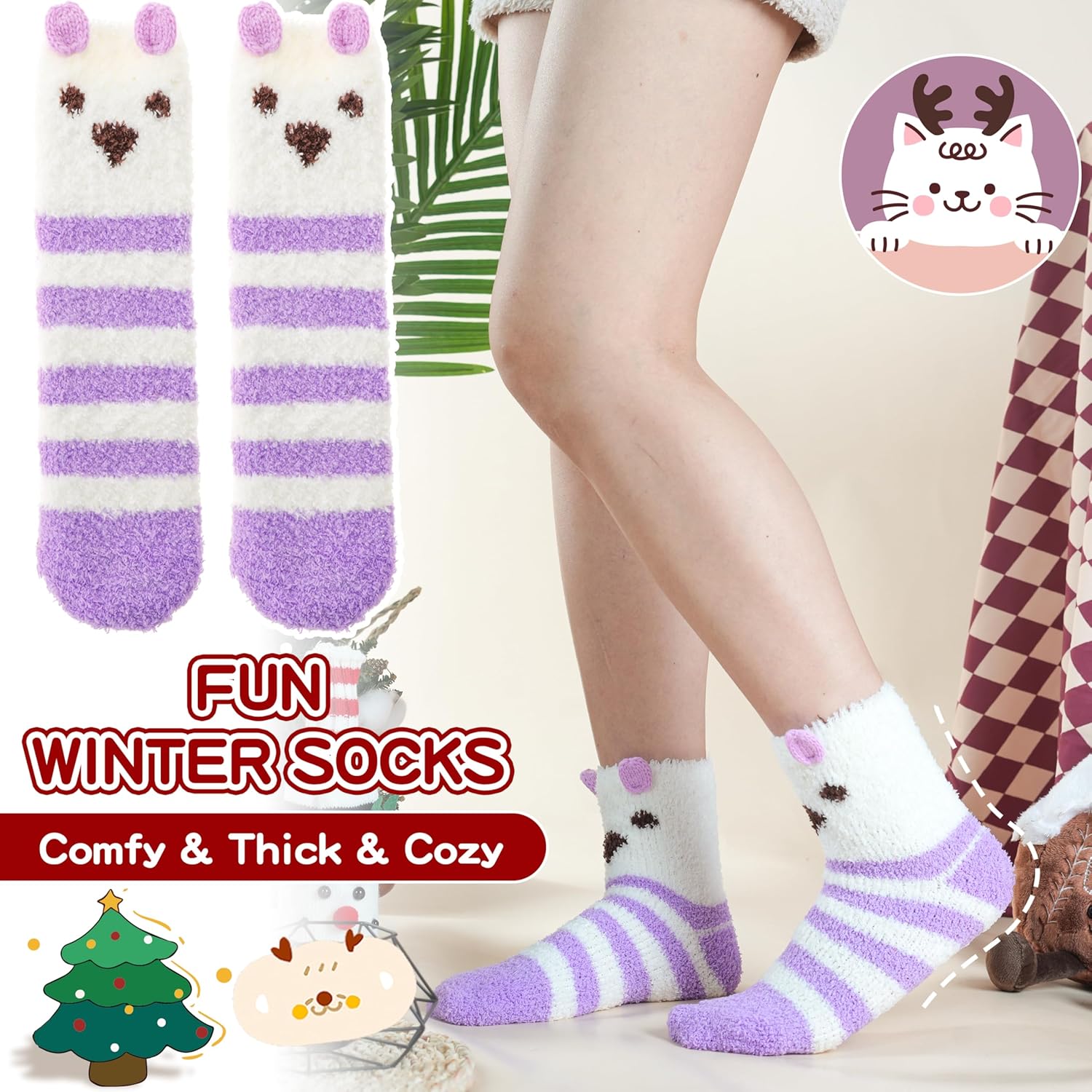 - MEILLEURE OPTION CADEAU : Ces chaussettes duveteuses sont un cadeau idéal pour toutes les occasions, y compris Noël, les échanges white elephant, les anniversaires, les cadeaux humoristiques, la fête des mères, les bas de Noël, la Saint-Valentin ou Halloween.