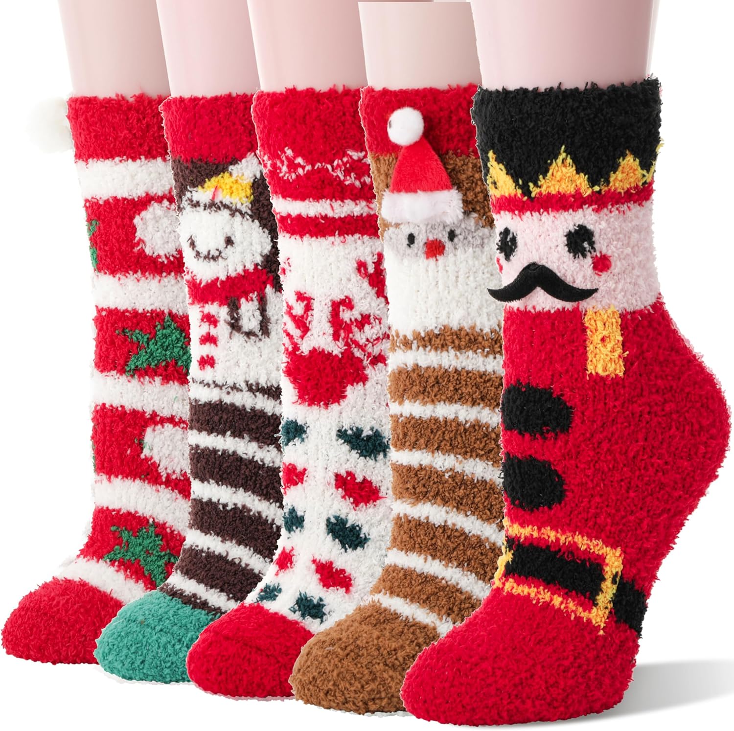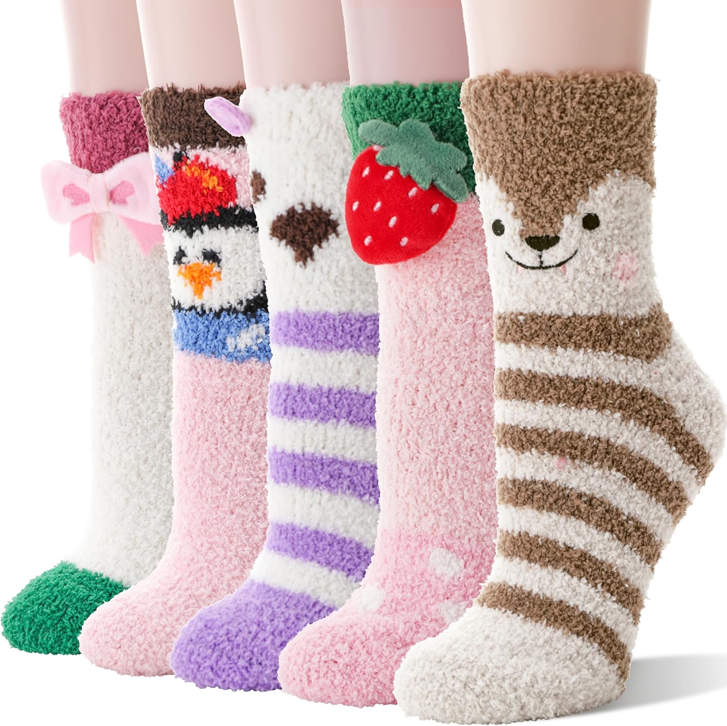 Chaussettes pantoufles douces, pelucheuses, chaudes pour femmes, hiver, confortables, épaisses, mignonnes, mi-mollet, pour dormir, en polaire, chaussettes de Noël, 5 paires