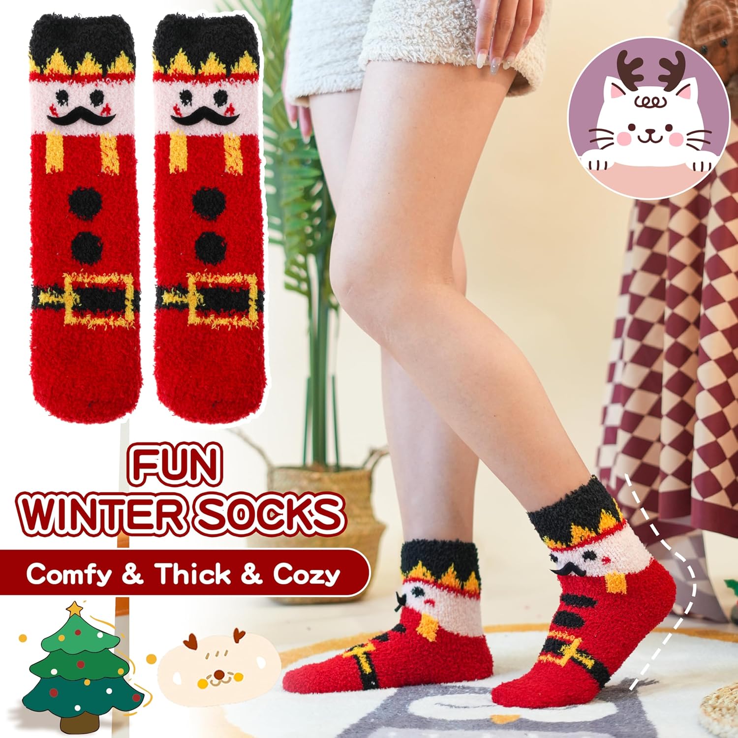- DESIGN SPÉCIAL - Avec plus de motifs de Noël tels que cerf, chien, bonhomme de neige, etc., le tissu doux des chaussettes sur vos pieds vous accompagne partout, gardant vos pieds plus confortables et chauds en hiver.