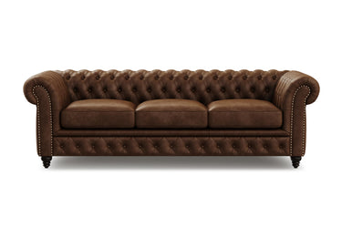 Canapé 3 places Valencia Parma Chesterfield 82" | Cuir pleine fleur aniline premium | Canapé en cuir milieu du siècle avec dossier capitonné classique à boutons, pieds en bois pour salon, chocolat