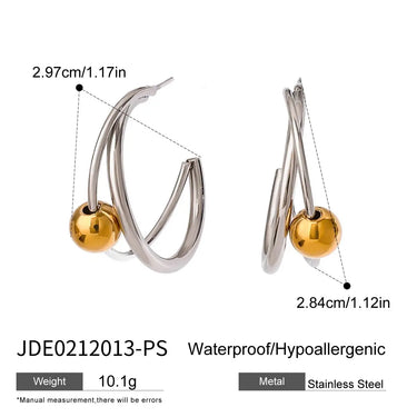Zora bague double en acier inoxydable plaqué or 18 carats avec perle dorée, clip d'oreille tendance