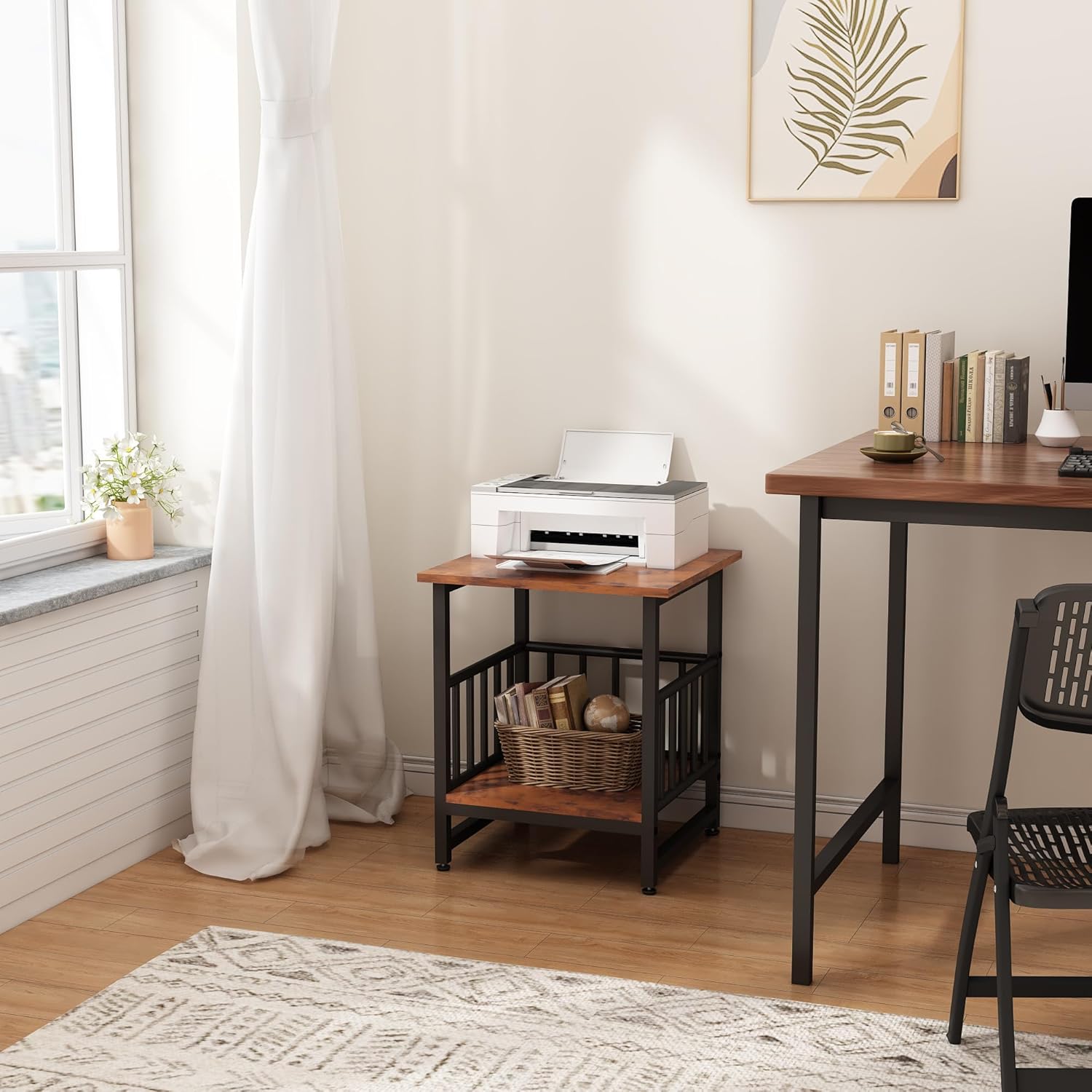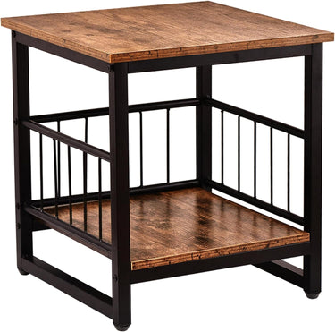 WAYTRIM Storage End Table, Industrial Side Table Mini Fridge Stand Fishtank Coffee Table with Large Metal Frame for Living Room Rustic Brown