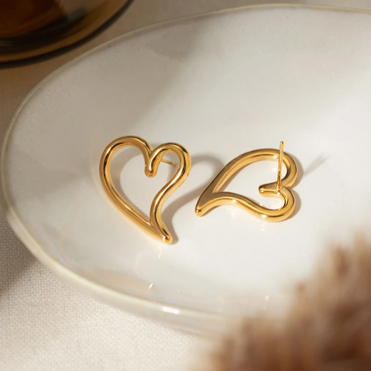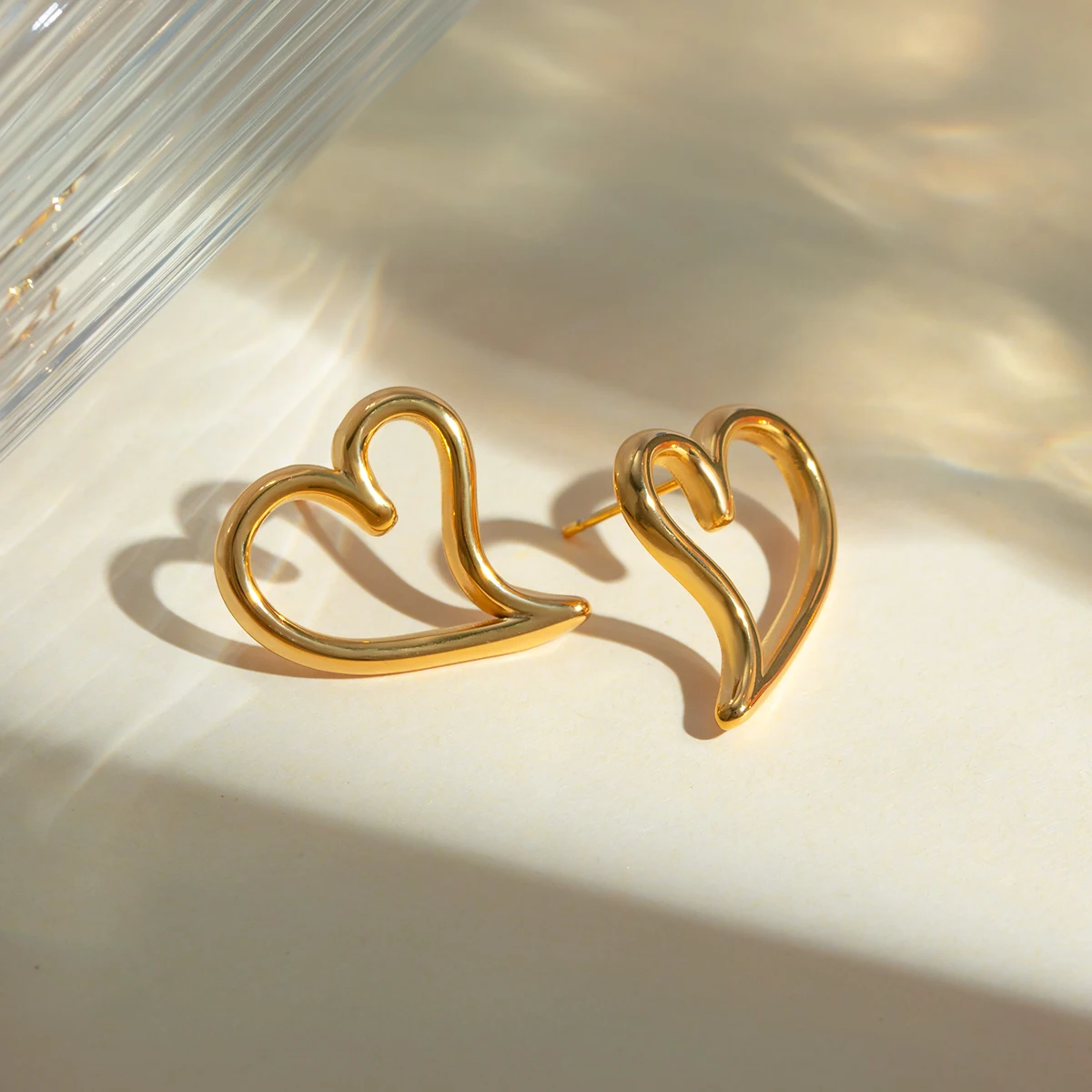 Orecchini a cuore grande vuoto minimalisti leggeri e accoglienti placcati in oro 18k personalizzati in acciaio inossidabile dichiarazione impermeabile gioielli