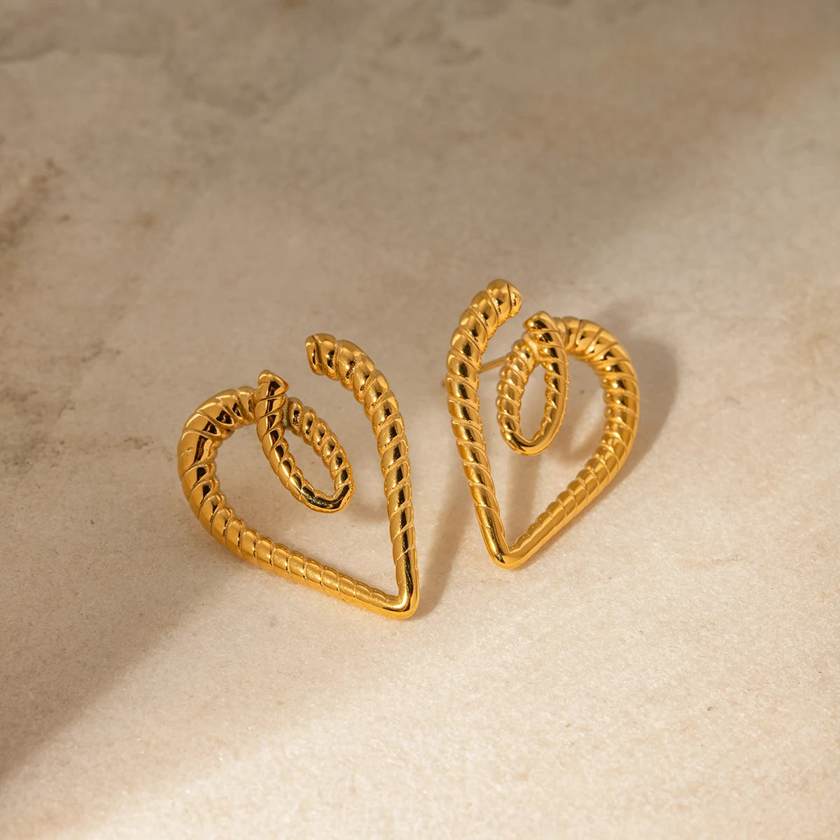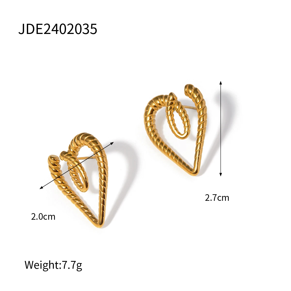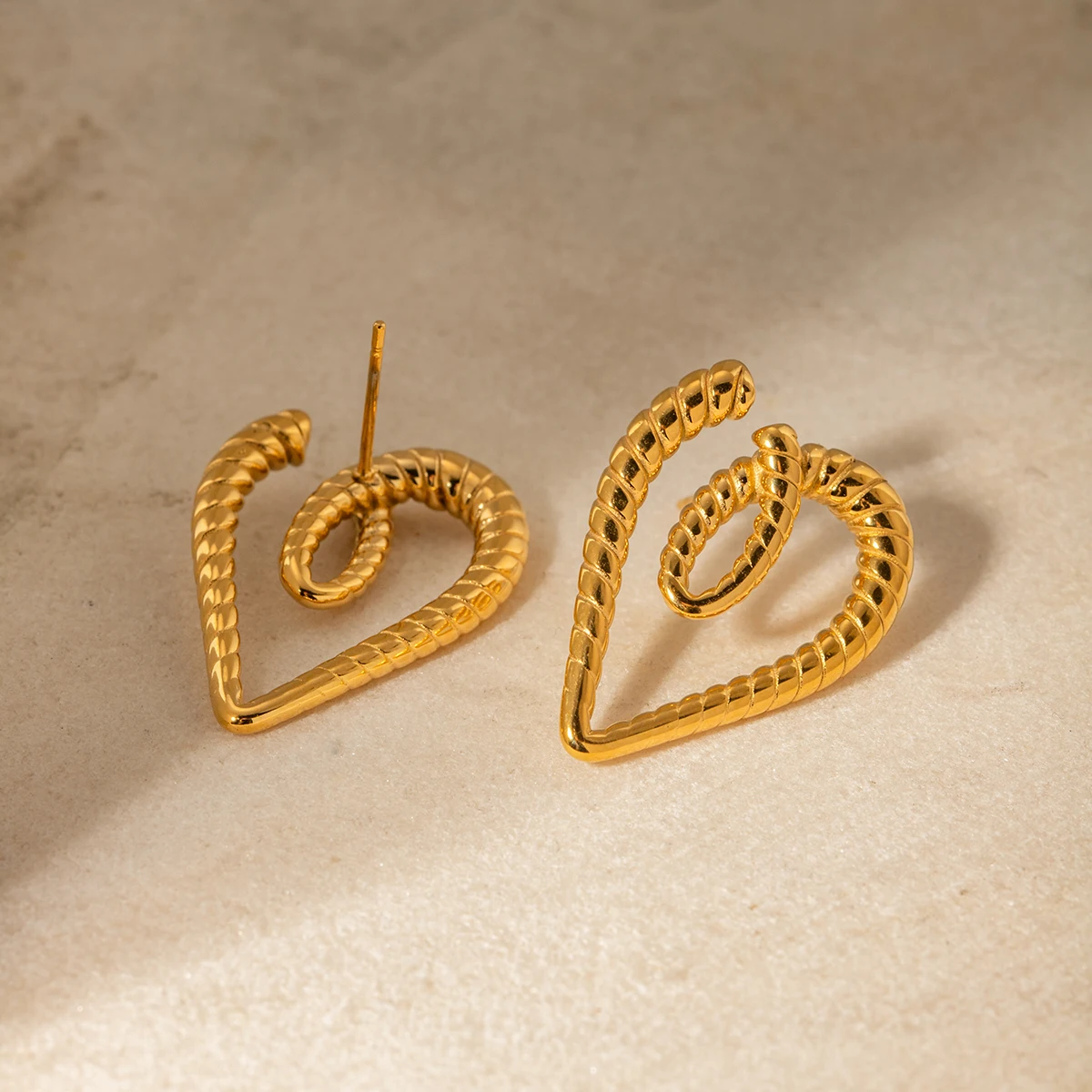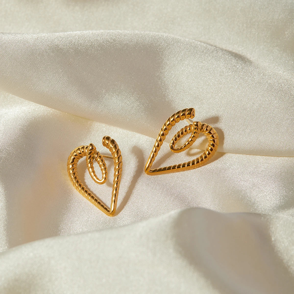 Orecchini a cuore d'amore con design a coste in acciaio inossidabile, placcati in oro 18K, minimalisti, dichiarazione, creativi, esclusivi, gioielli personalizzati