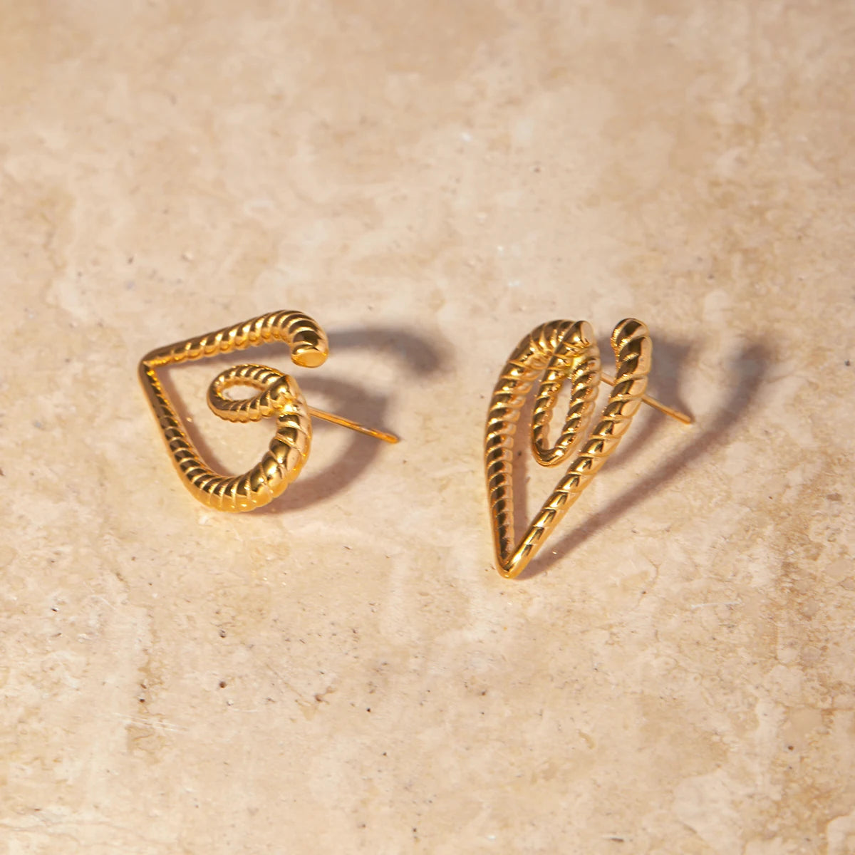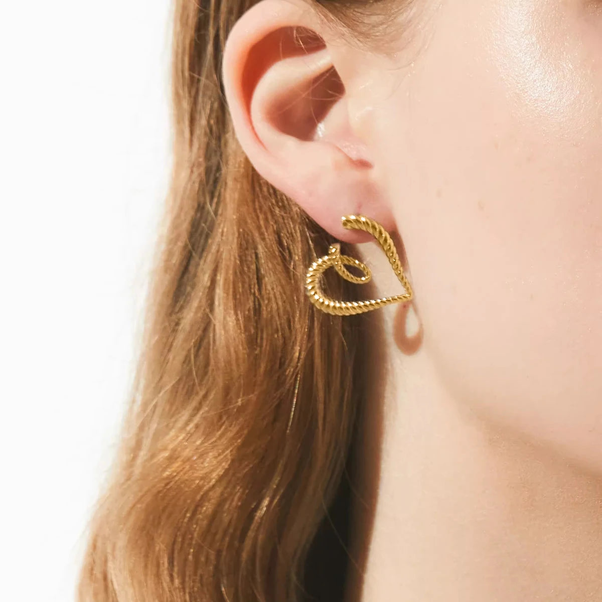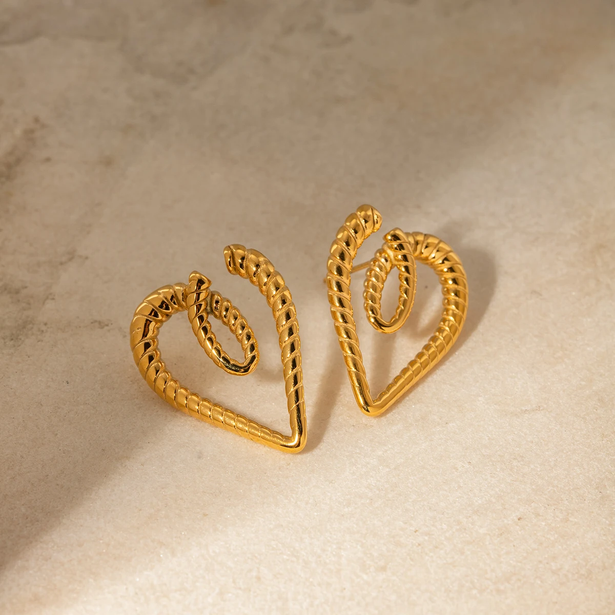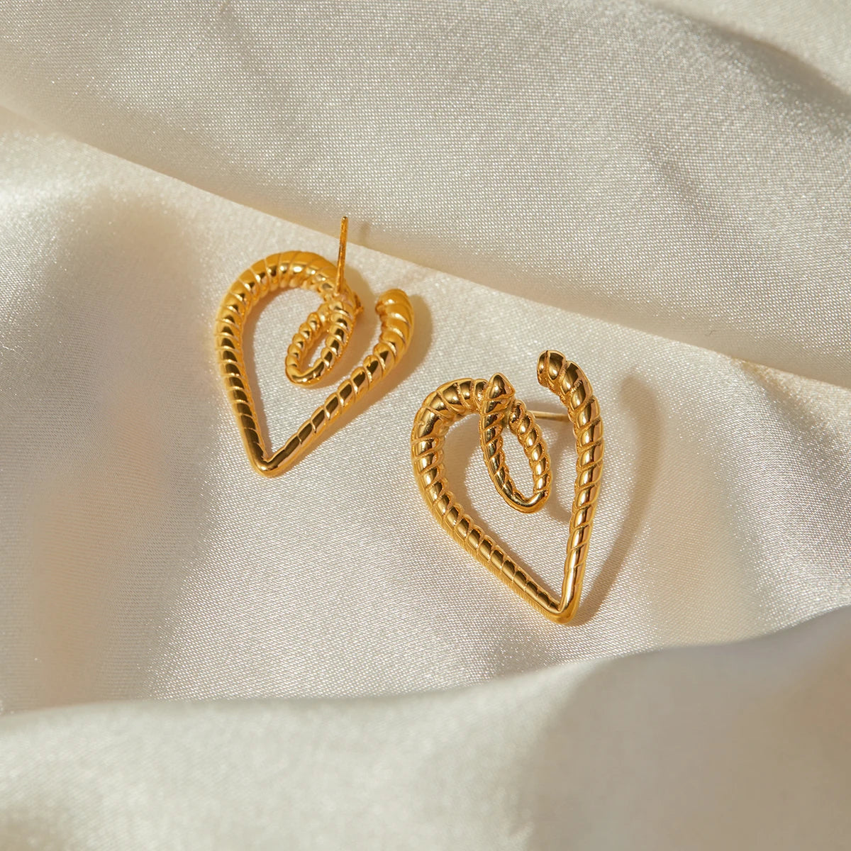 Orecchini a cuore d'amore con design a coste in acciaio inossidabile, placcati in oro 18K, minimalisti, dichiarazione, creativi, esclusivi, gioielli personalizzati