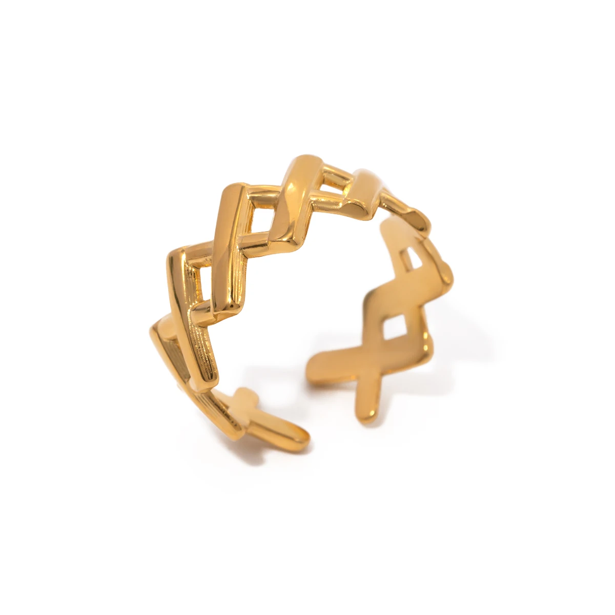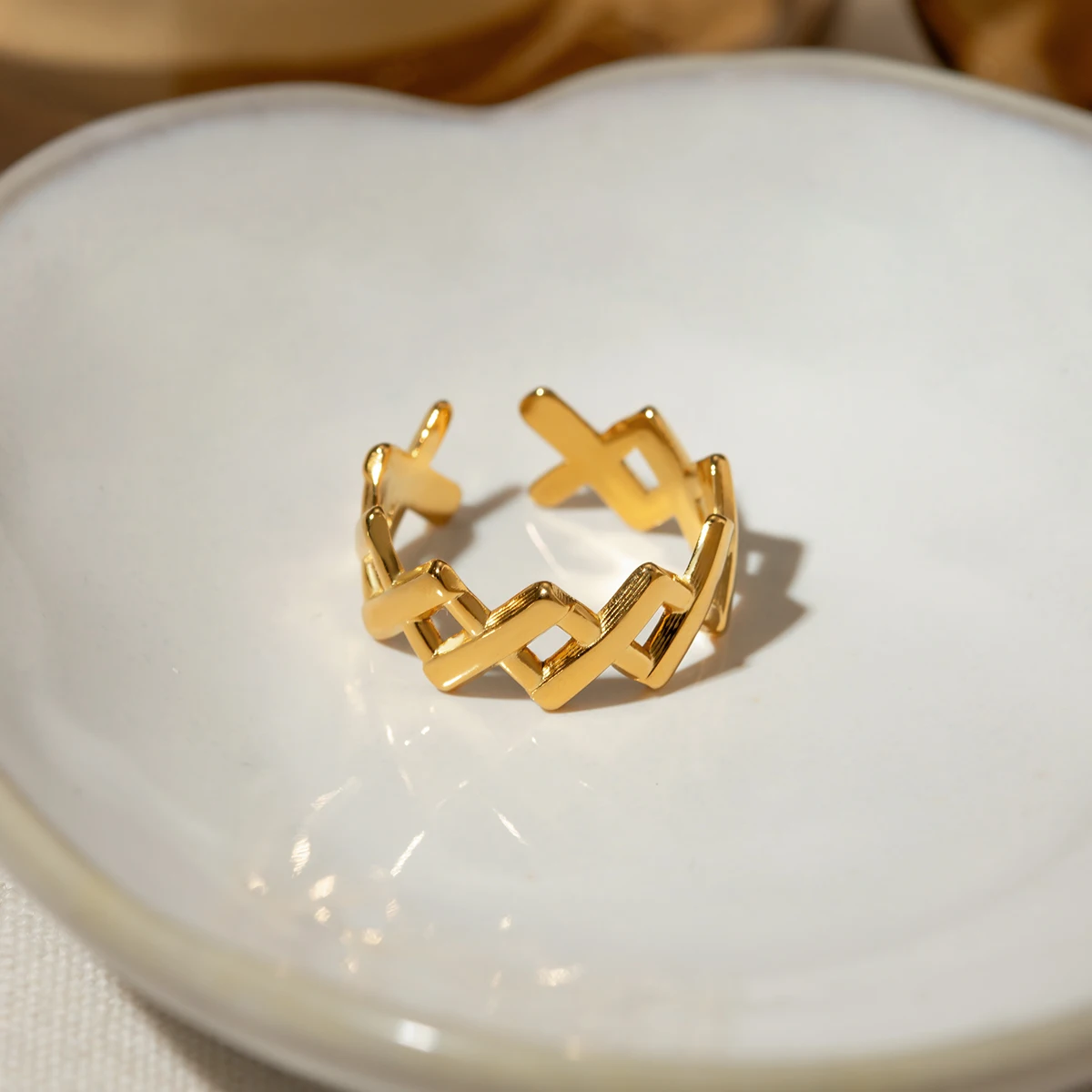 Anello regolabile a romboide geometrico in acciaio inossidabile placcato in oro 18k, resistente alla ruggine, ciondolo dichiarazione, gioielleria anti allergica