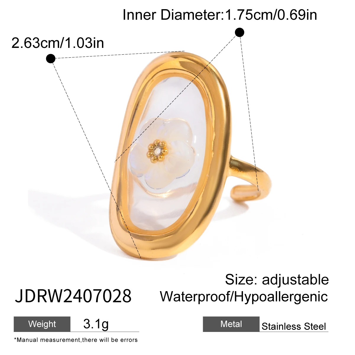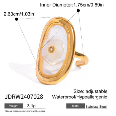 Anello aperto da donna con perla in acciaio a forma di fiore con conchiglia ovale placcato in acciaio inossidabile oro 18K creativo, charm antiallergico, gioielleria quotidiana