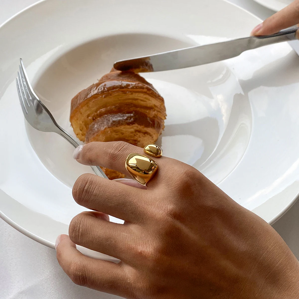 Anello Minimalista Asimmetrico 18k Doppio Petalo Apertura Taglia Donna Affascinante Acciaio Inossidabile Impermeabile Gioielleria Attraente