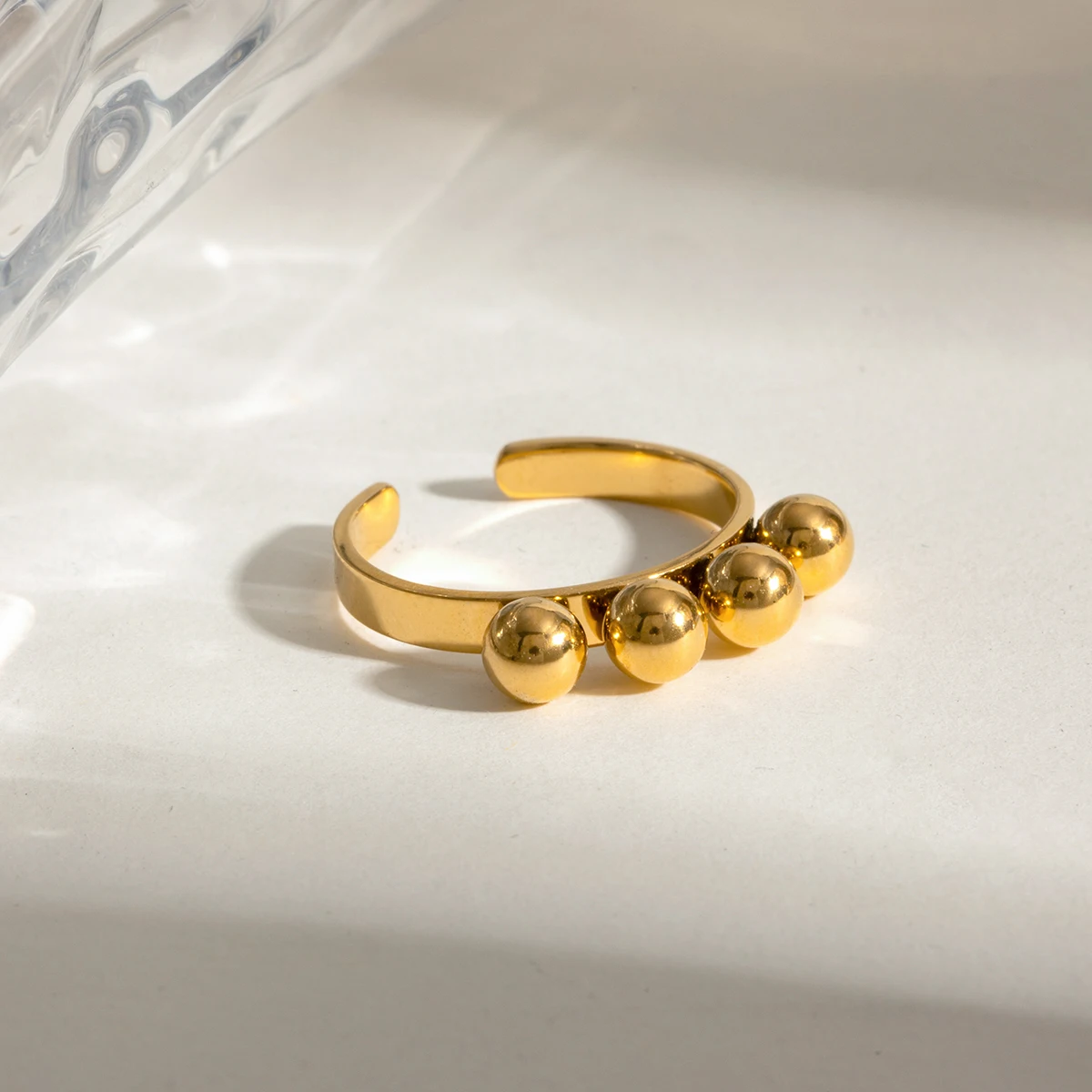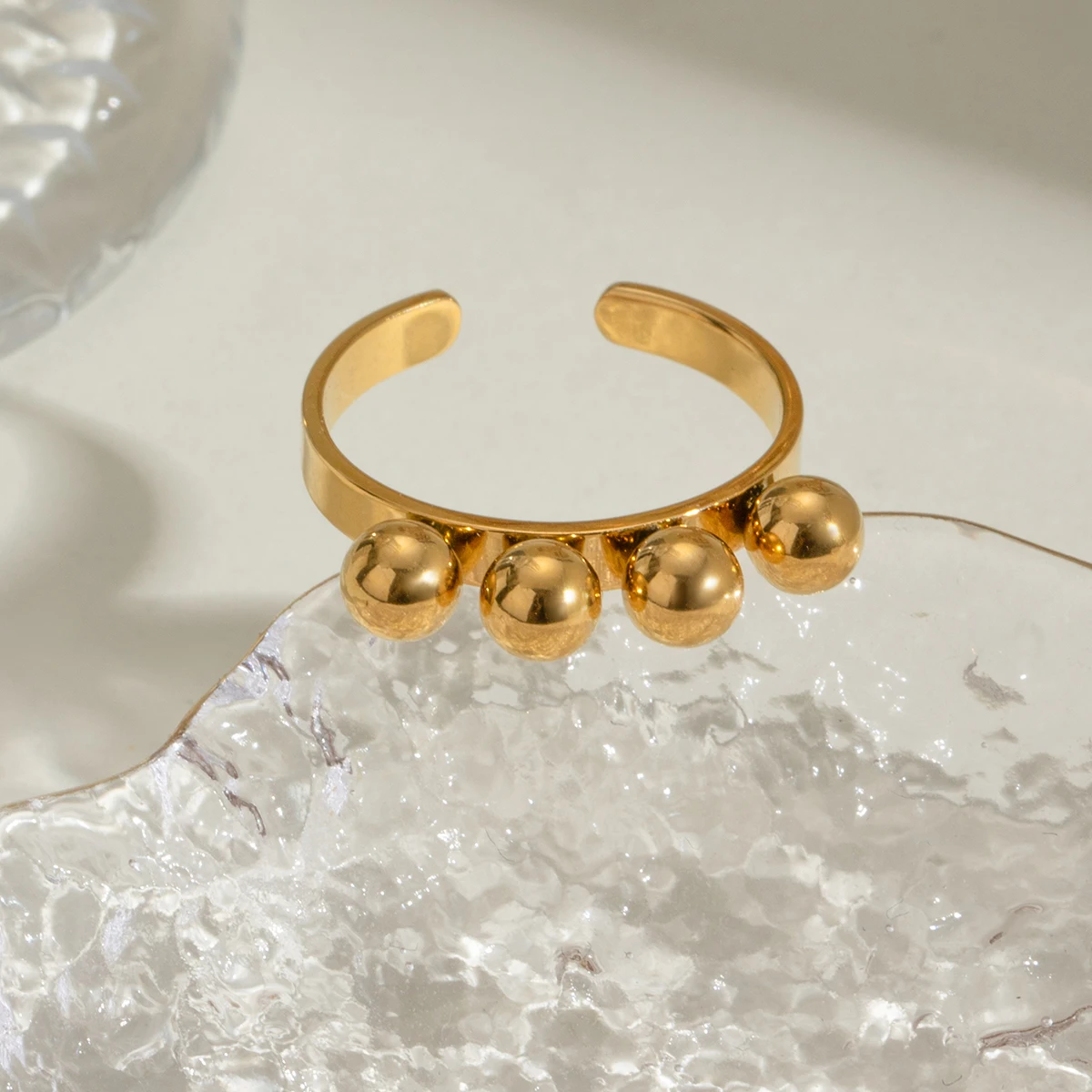 Anello di apertura con superficie liscia a sfera personalizzato in metallo acciaio inossidabile placcato oro 18K PVD prevenzione allergie gioielli