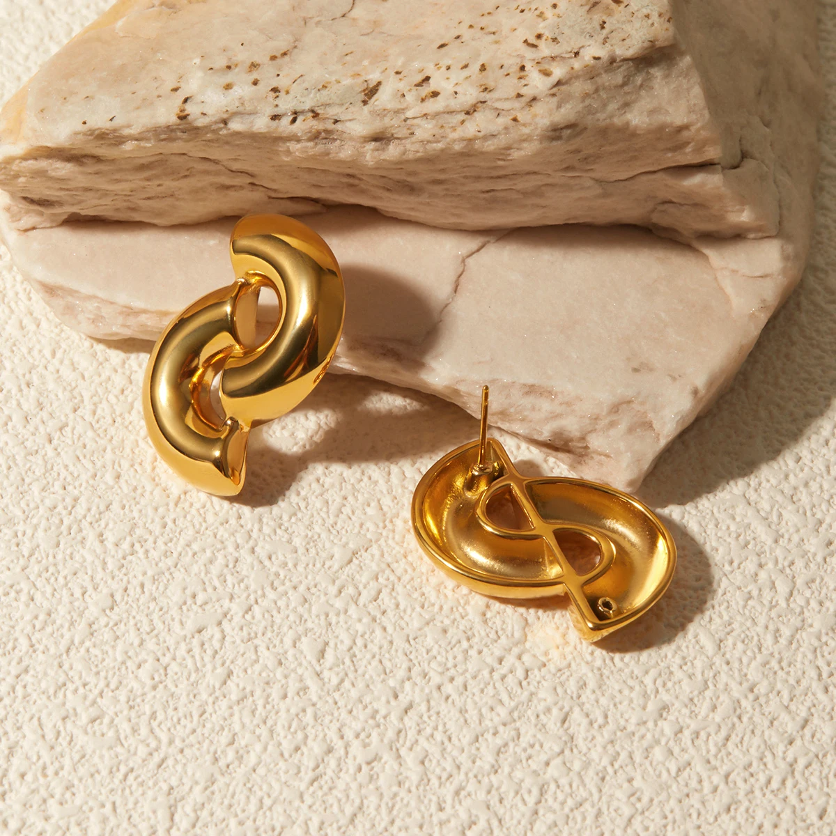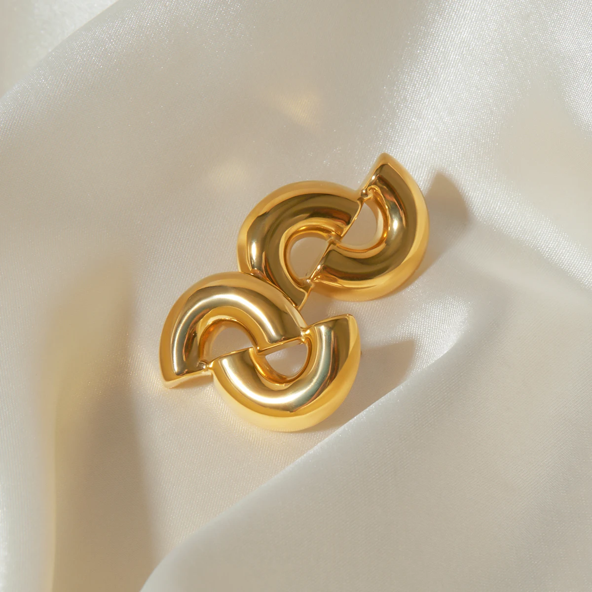 Orecchini con design intrecciato a mezzaluna delicati in acciaio inossidabile placcati in oro 18k, leggeri, accoglienti, antiruggine, bijoux donna regalo gala