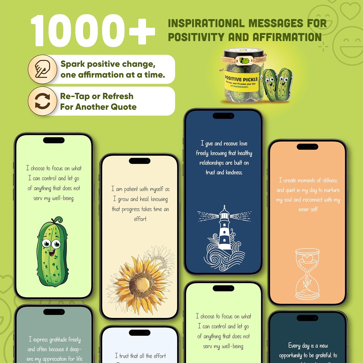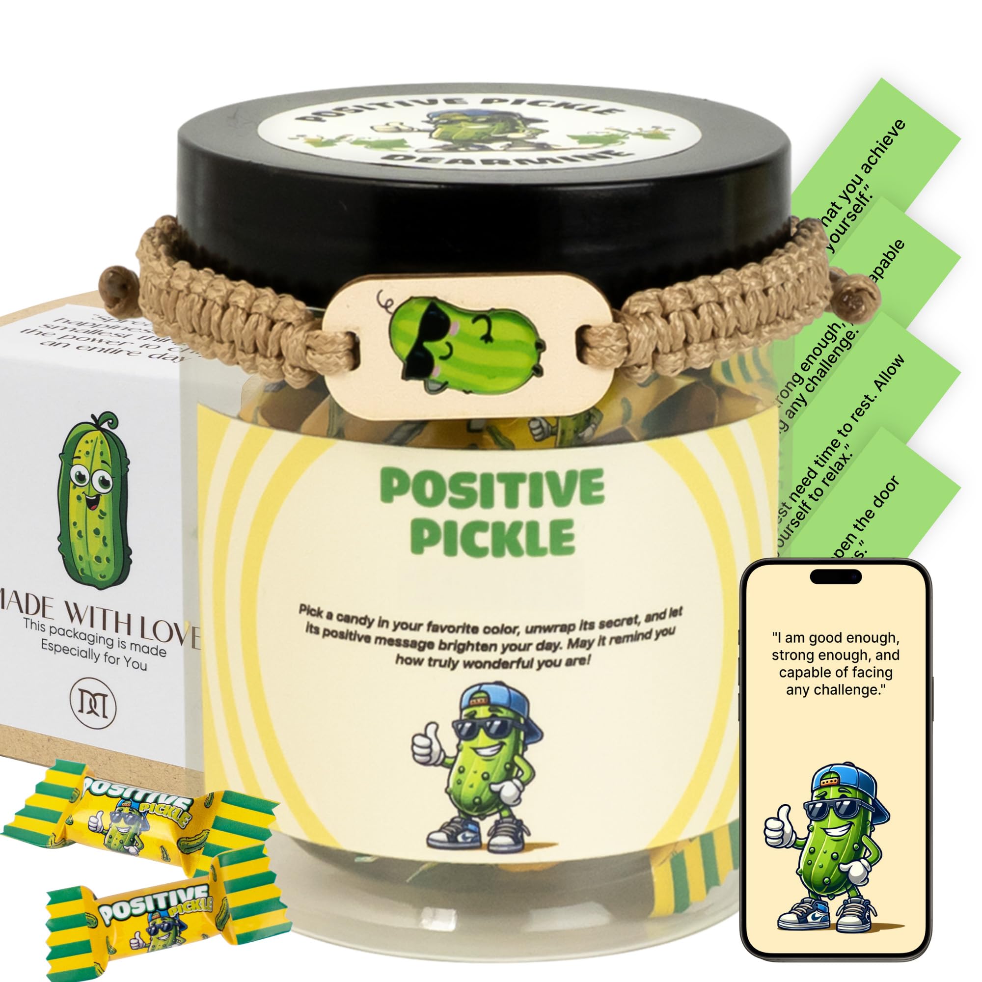 - 🥔 POSITIVE PICKLE FOR DAILY AFFIRMATION: Unwind with our Positive Pickle Affirmation Jar, featuring mini pickle-shaped cards with uplifting words, emotional support messages, and light-hearted puns. It's the perfect self-care tool for positivity and gratitude practices.