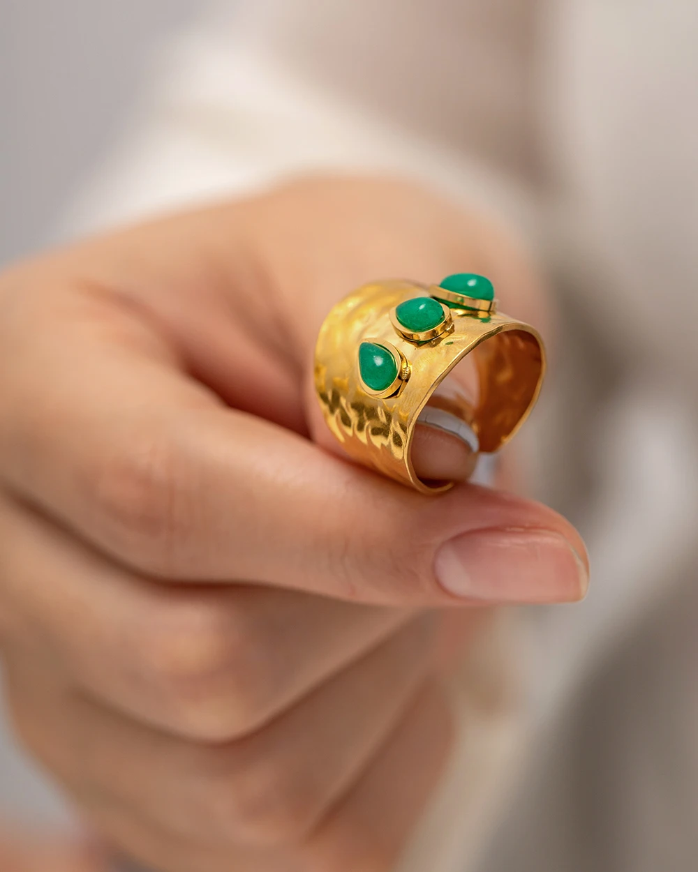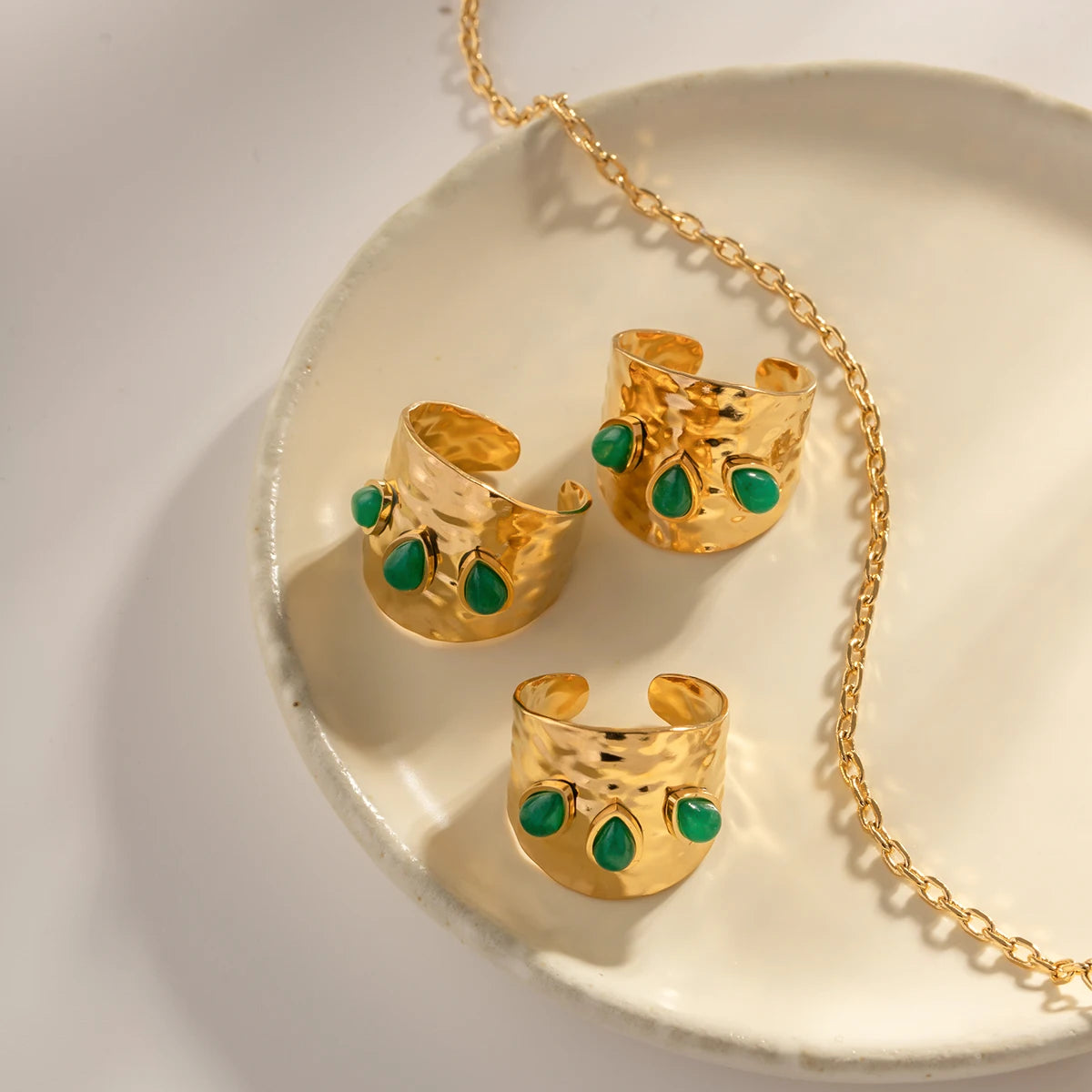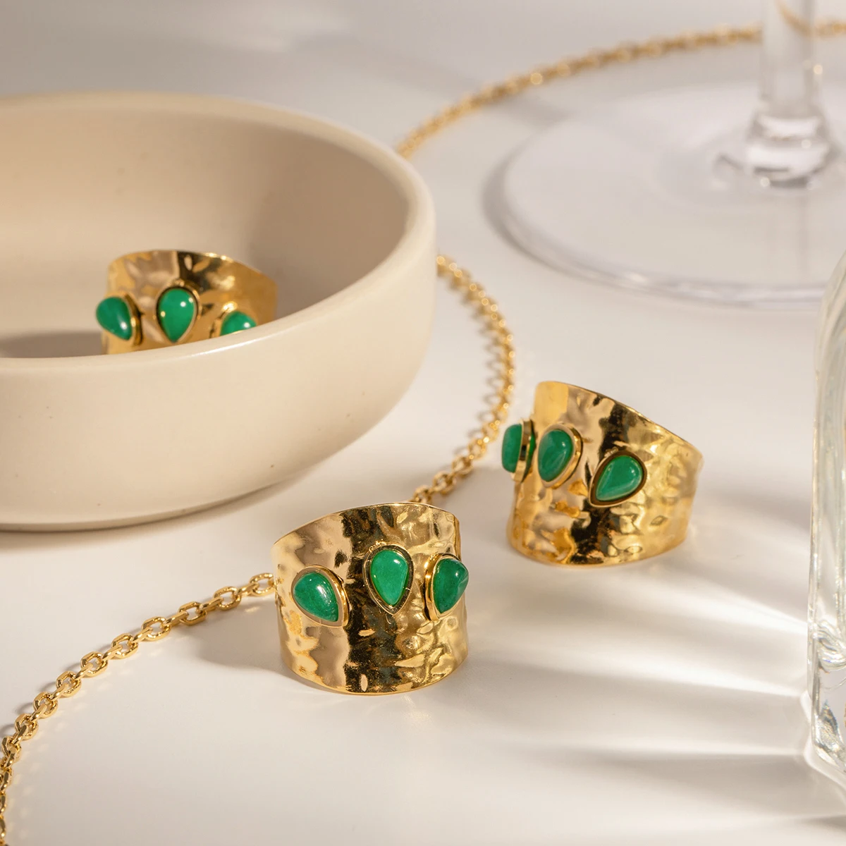 Anello Esagerato in Pietra Naturale per Donne Anello Vintage dal Design Irregolare Anello con Pietra Verde Anello in Acciaio Inossidabile Gioiello Regalo Anillos