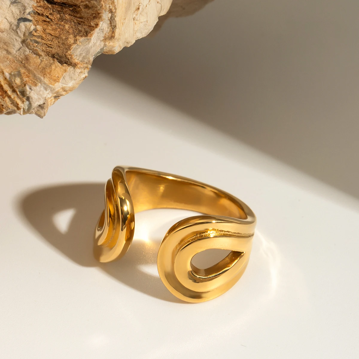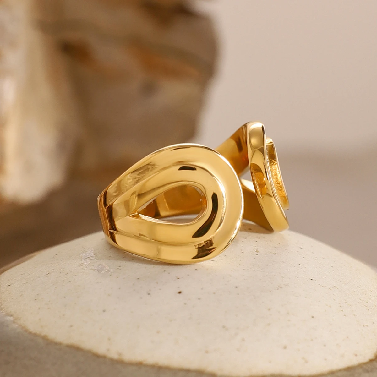Anello aperto a righe in metallo in acciaio inossidabile alla moda, placcato 18K PVD, impermeabile, resistente alla ruggine, gioiello portafortuna regalo