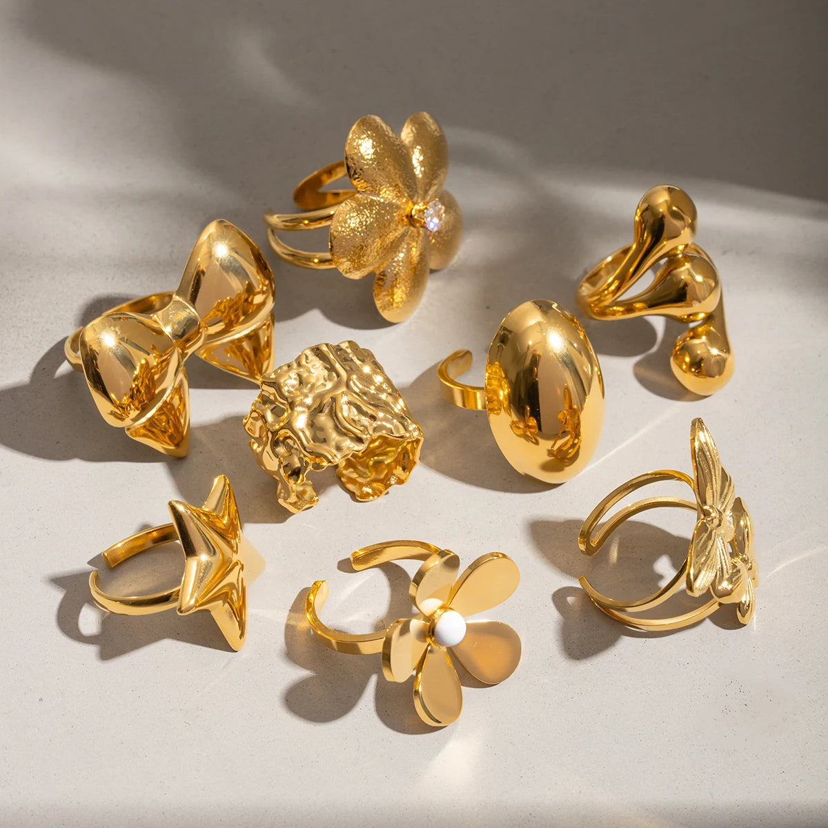 Anello aperto dal design minimalista multi-stile in acciaio inossidabile colore oro leggero confortevole fascino donna gioielli di dichiarazione placcati 18K PVD