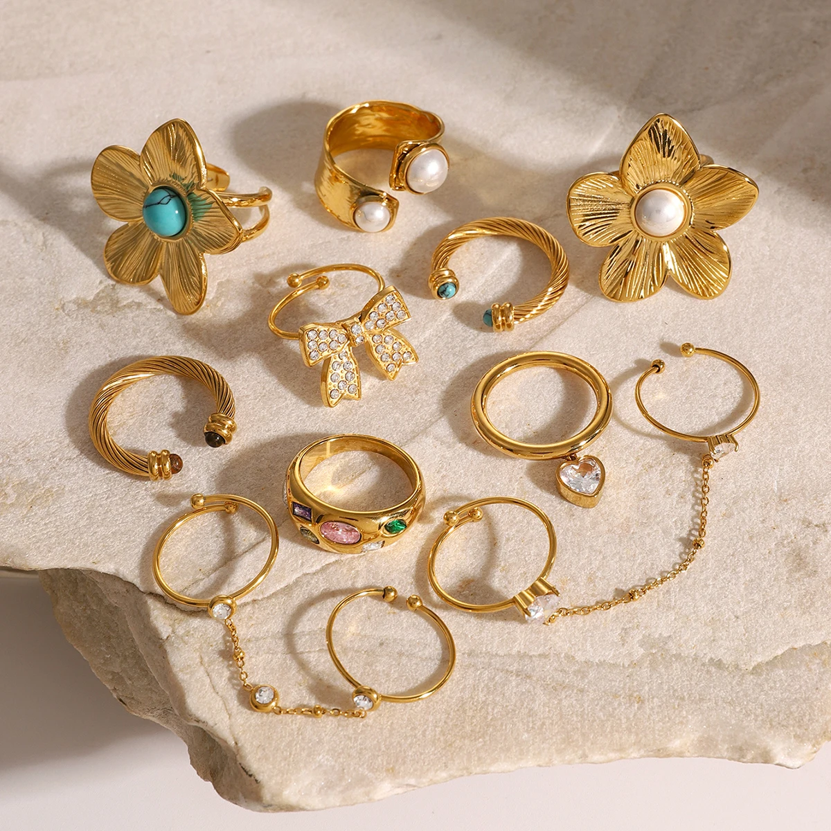 Anello aperto dal design multi-stile minimalista in acciaio inossidabile colore oro leggero confortevole fascino donna gioielli statement placcati 18K PVD