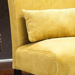 La poltrona d'accento Pisano porta un po' di sole in più a casa tua con tessuto chenille colorato e rivestimento in tela stampata.