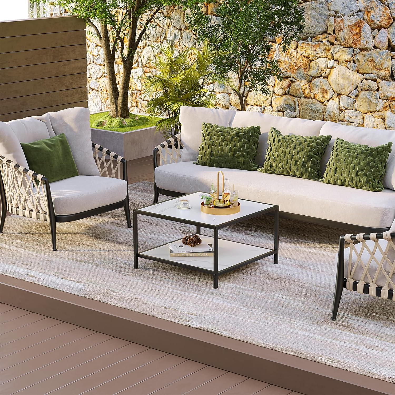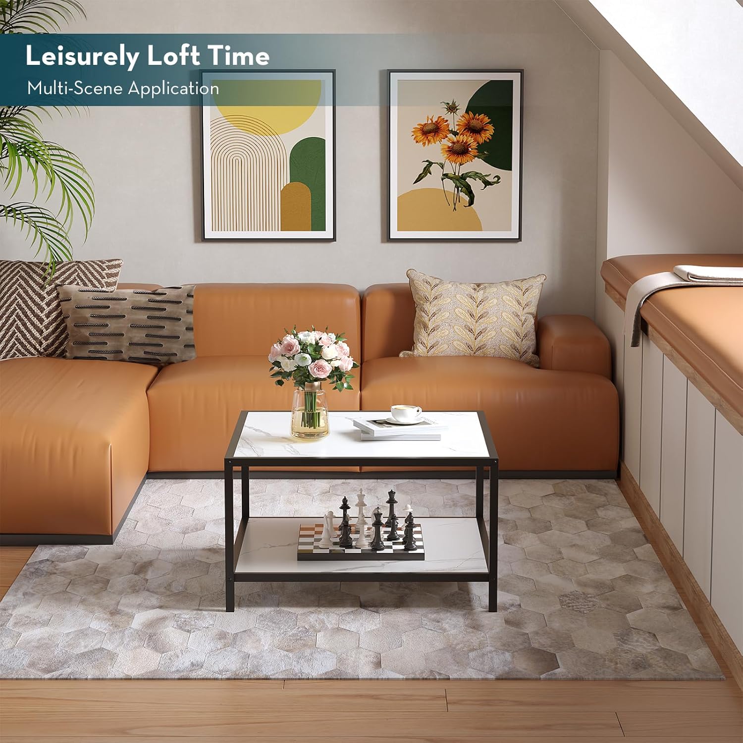 - 【Easy to Clean】 White faux marble top, stain resistant and water resistant, only a cloth is needed to clean this coffee table
