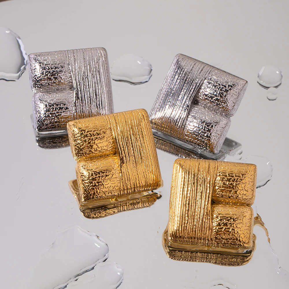Orecchini quadrati testurizzati spazzolati in acciaio inossidabile placcati PVD 18K, robusti, luminosi, lisci, resistenti alla ruggine, charm, gioielli per orecchio, regalo per gala
