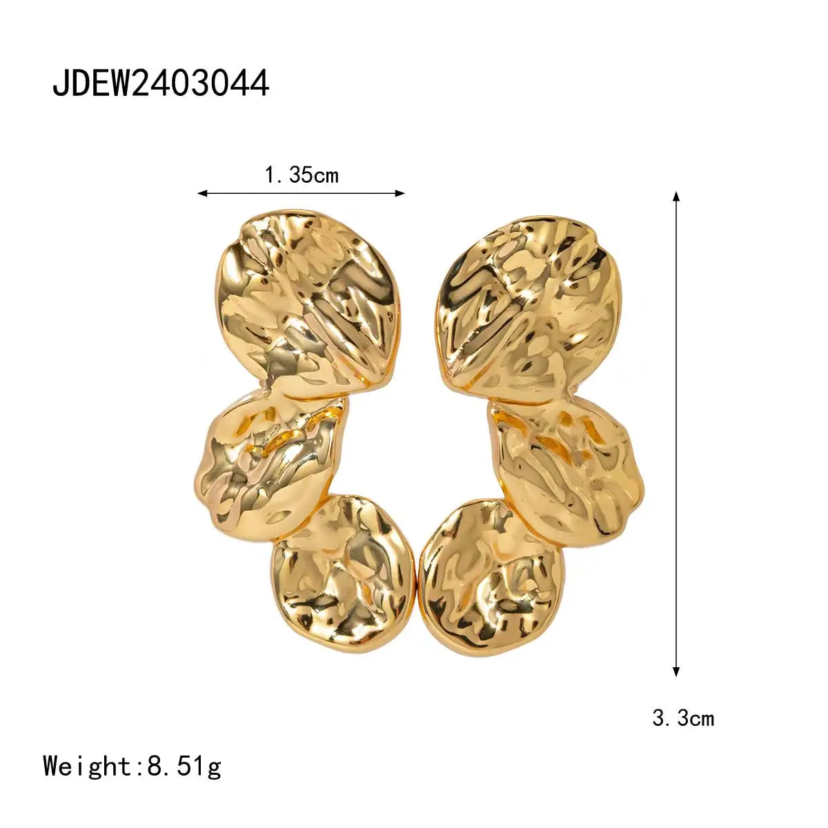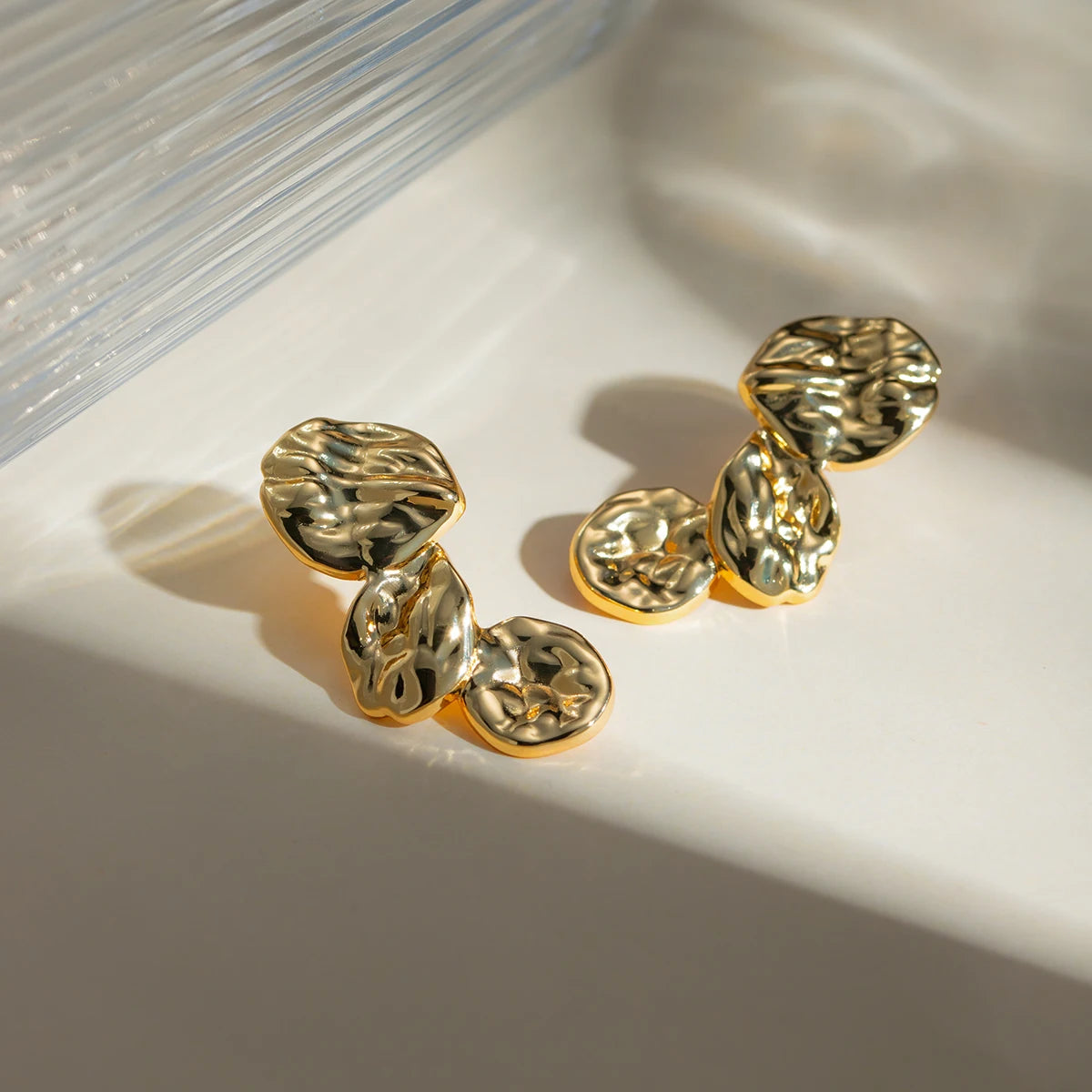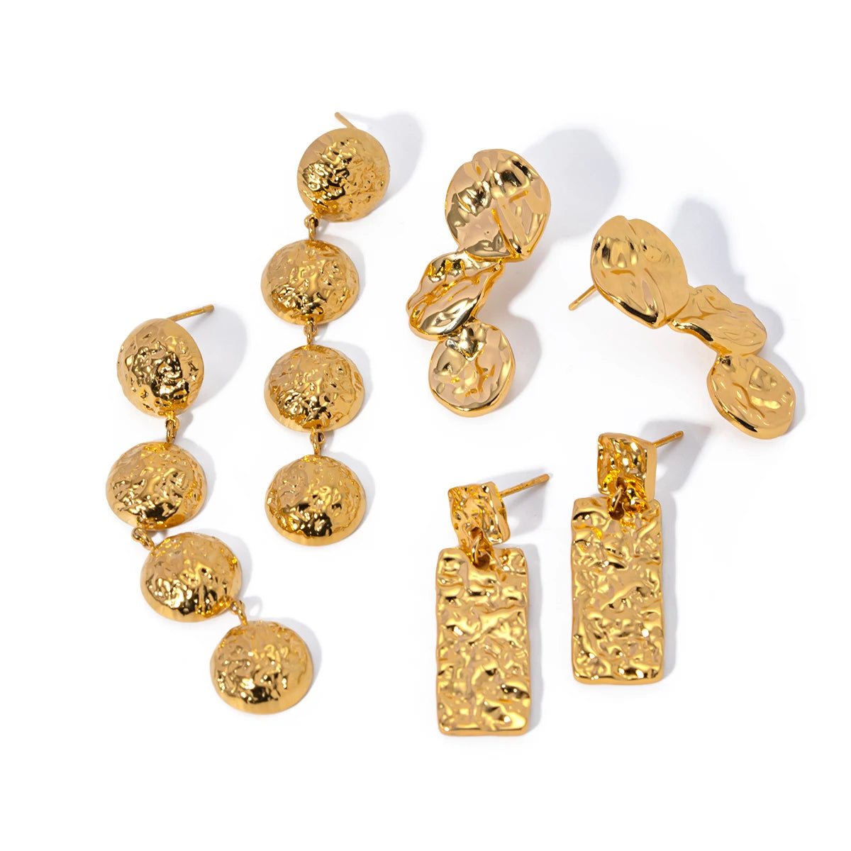 Orecchini a pendente plissettati geometrici vintage in acciaio inossidabile placcati PVD 18k con finitura martellata, gioielli dal fascino temperamento libero per donna