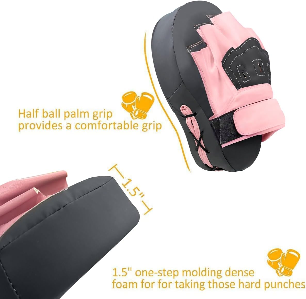 - Wear-Resisting Padding:1.5 inches one-step molding dense foam for taking those hard punches. Thick but lightweight hand pads help you from feeling pain after mitt workouts, and also provide more flexibility with a variety of strikes and styles