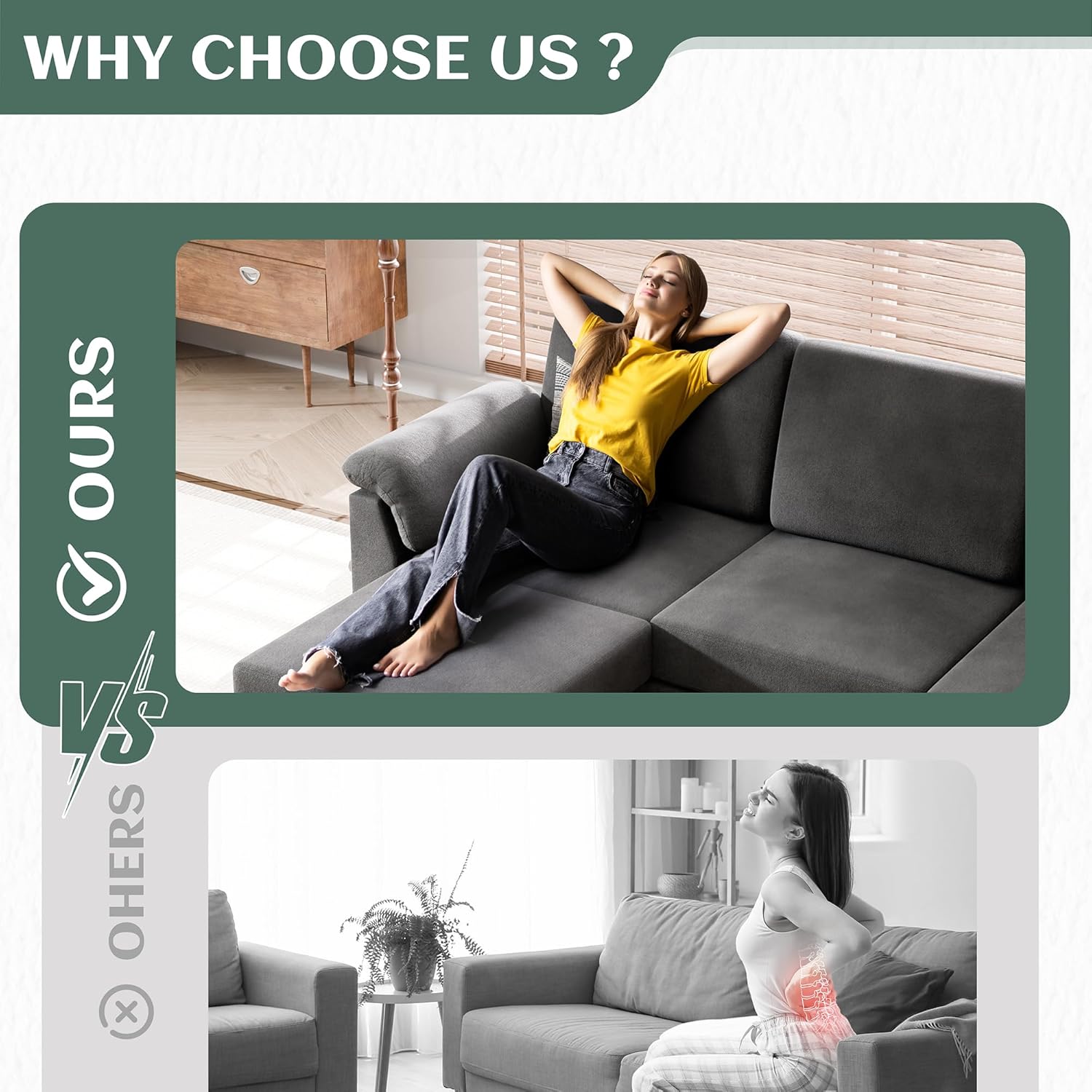 - Ultimate comfort: This sectional sofa stands out with its fine linen fabric and 5.5-inch high-density sponge cushion, which not only feels soft to the touch but also is durable, allowing you to enjoy a comfortable leisurely time whether you are sitting or lying down.