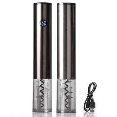 One-button rechargeable electric bottle opener + rechargeable battery*4+USB charging cable + paper cutter; upgrade: one-touch automatic induction + mirror gun color tube + smoky gray transparent cover + electroplating window + CD pattern battery cover + cylinder box
