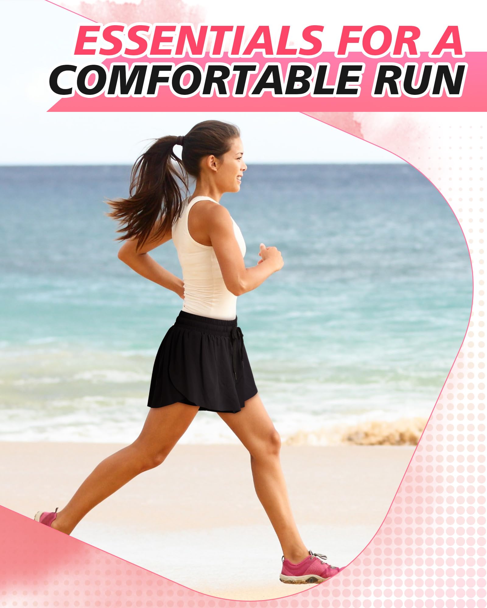 Didaey 3 Pcs Flowy Running Shorts for Women 2 in 1 Butterfly Shorts with Pockets Spandex Liner Athletic Workout(Medium,Black, Green, Red)