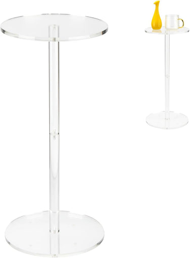 Acrylic Drink End Table, Clear Drink Table for Small Spaces with Anti-Slip Pads, 9.8" Round Modern Side Coffee Table for Living Room/Bedroom/Bathroom/Office/Outdoor/Business, Easy to Install