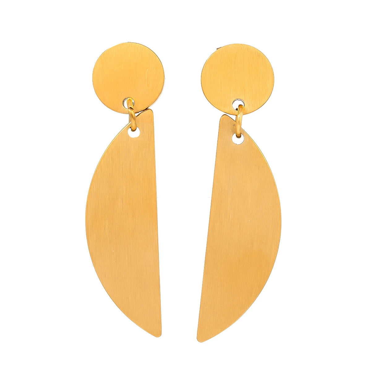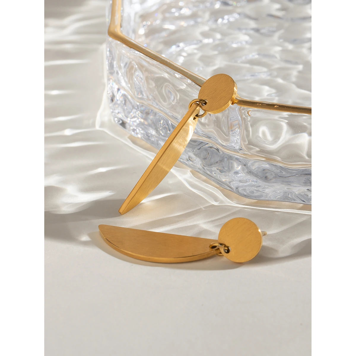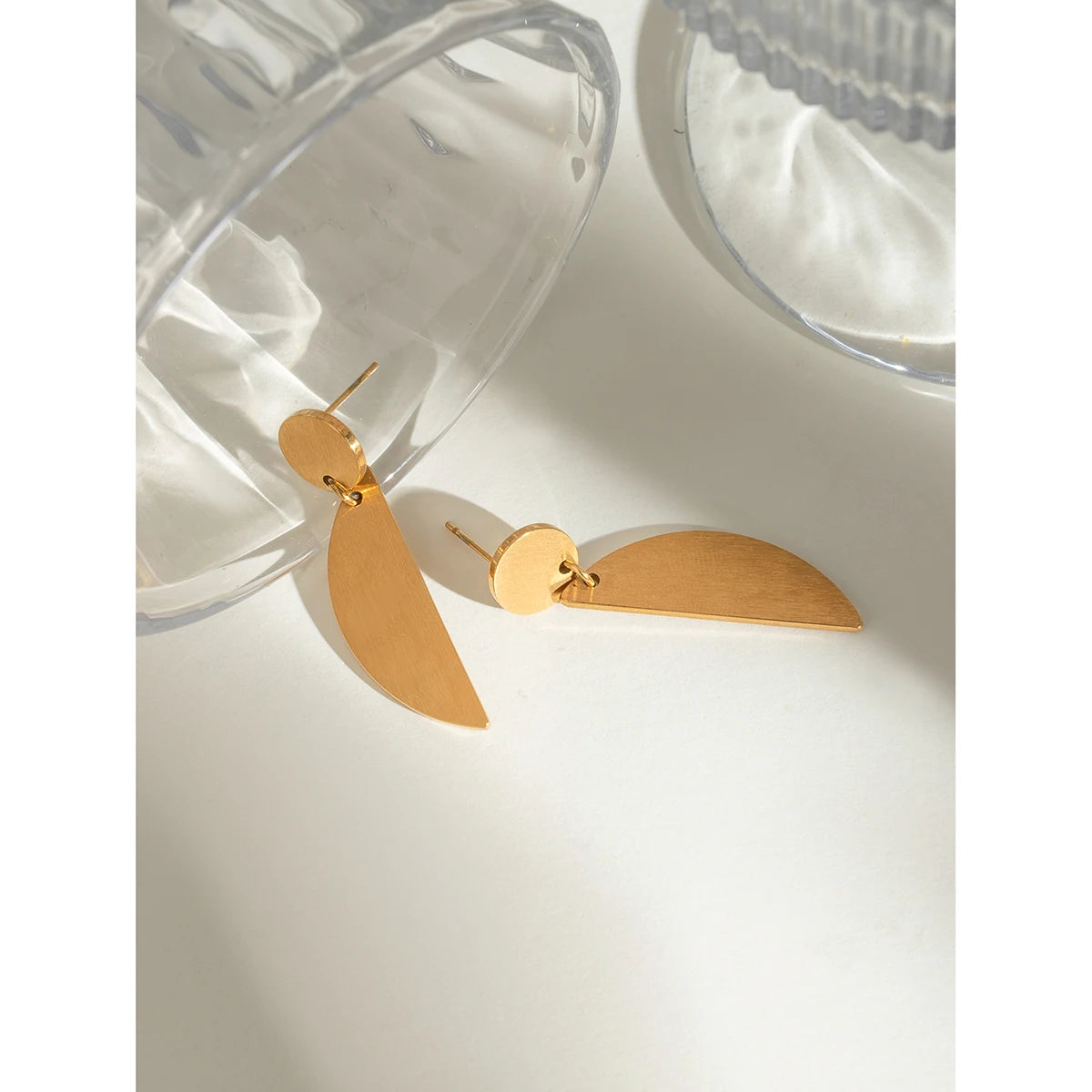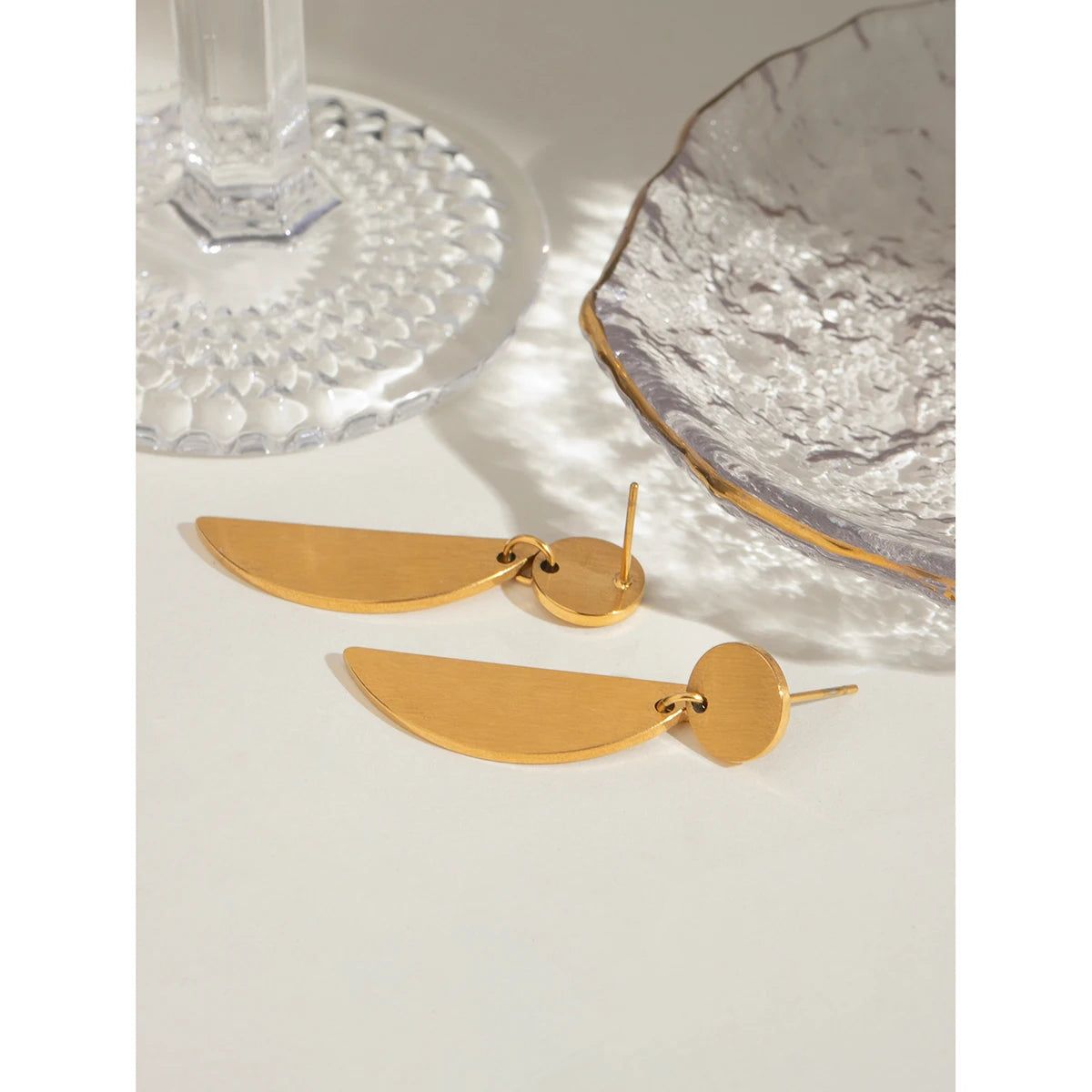18Kゴールドメッキ アレルギー防止 ステンレススチール ハーフムーン ブラッシュド効果 イヤリング チャーム デイリー エクスクイジット ジュエリー ビジュー フェム