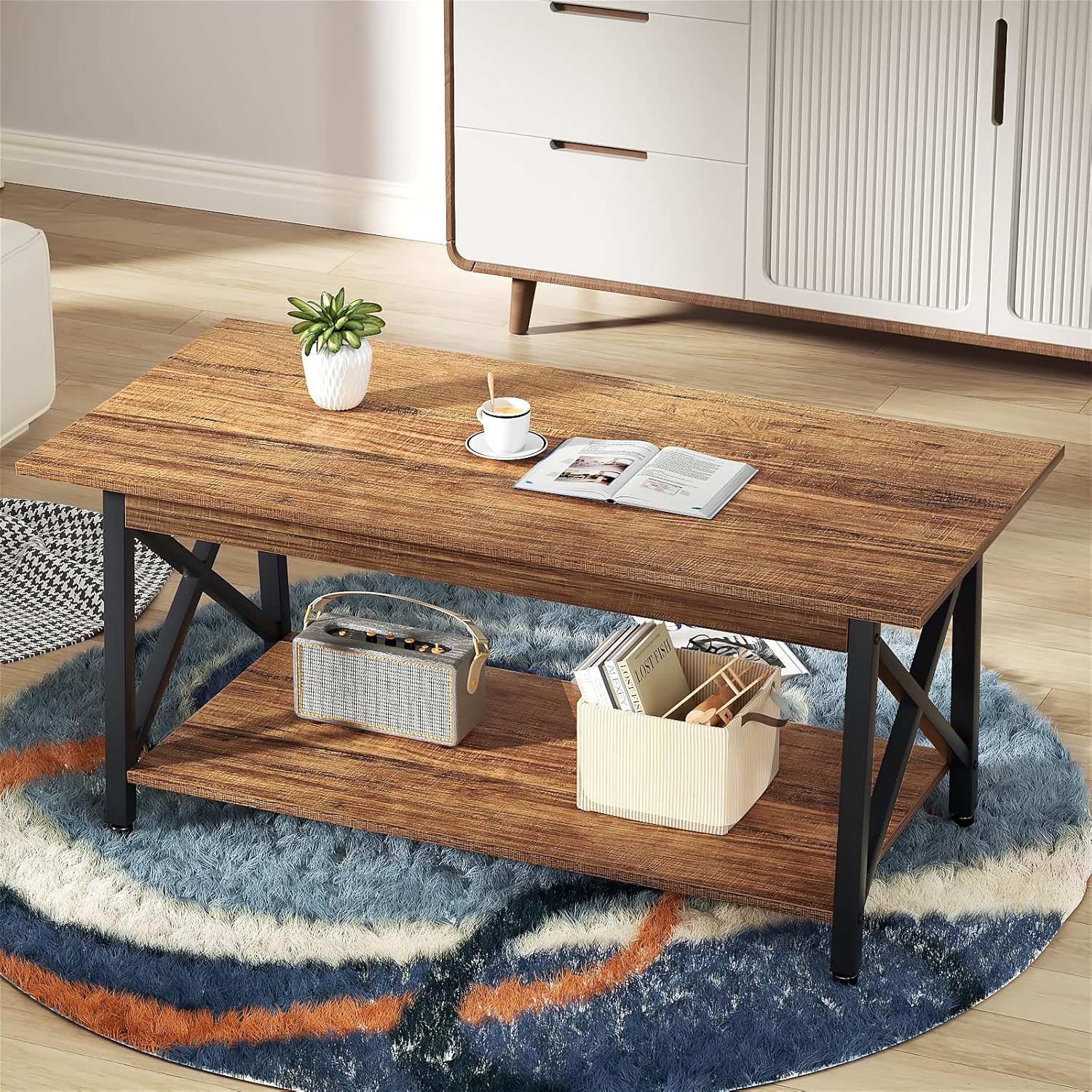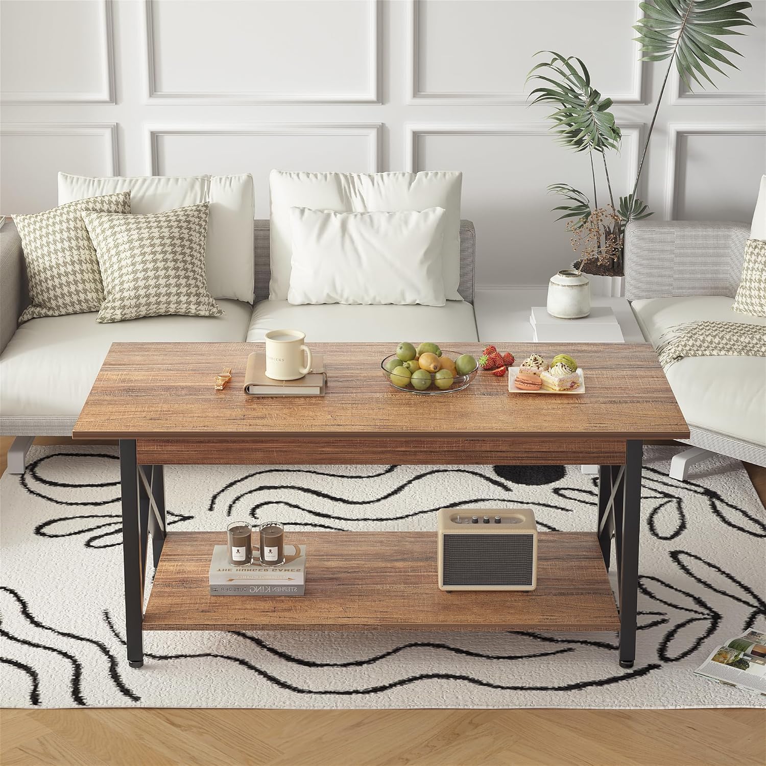 - Coffee Table with Storage: 2 tier storage shelf provide large storage and display space for the items you use and decorative things