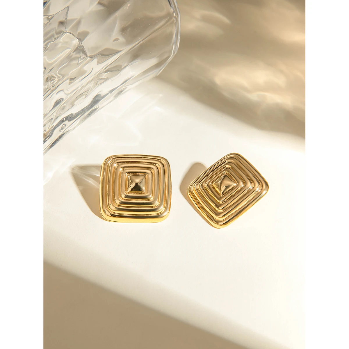 最高級のステンレススチールを使用し、18K PVDメッキでコーティングされたこれらのイヤリングは、防水性と変色耐性を兼ね備えた豪華な外観を提供します。洗練されたスクエア型ループデザインがモダンな幾何学的アクセントを加え、どんな服装にも映えるアクセサリーです。