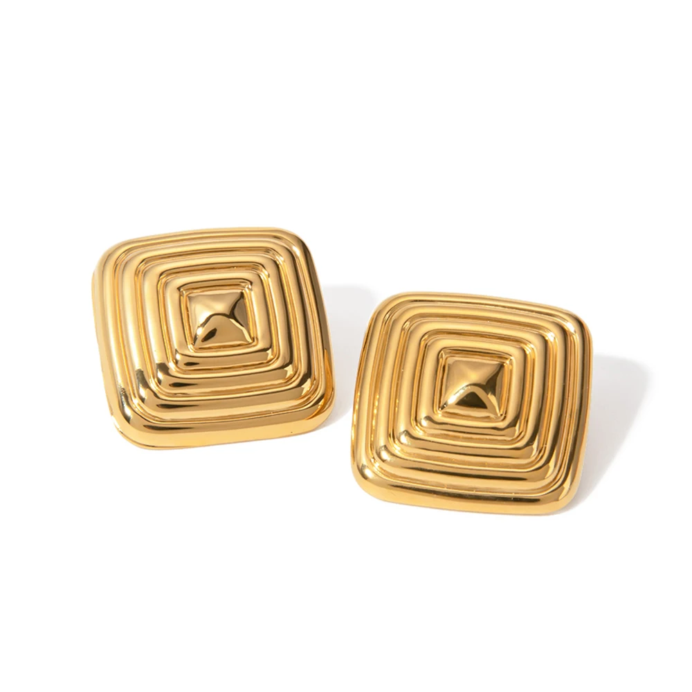 18K PVDメッキステンレススチール スクエア型ループイヤリング