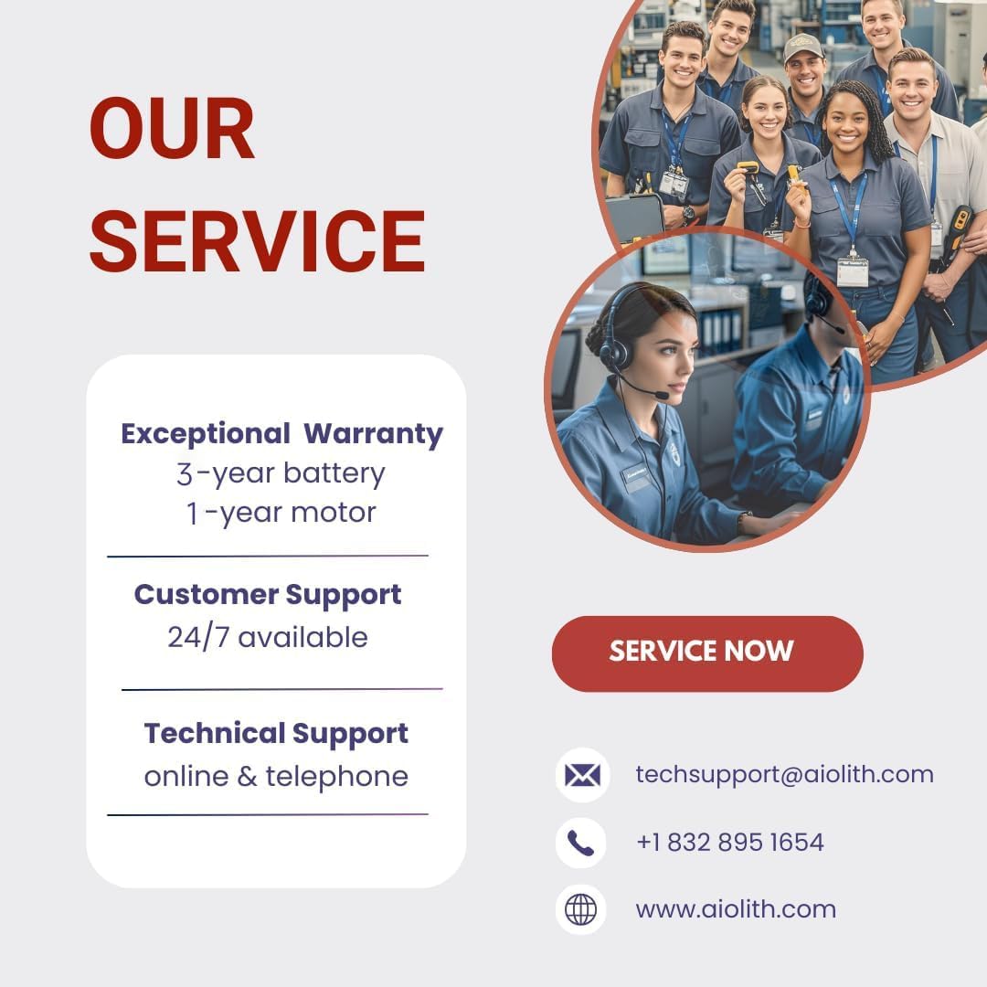 - SUPPORT SERVICE: Enjoy peace of mind with our 3-year battery commitment and 1-year motor pledge. Supported by an experienced team with over ten years of expertise, we provide prompt and efficient solutions within 24 hours
