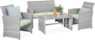 ベストチョイスプロダクツ 4ピース アウトドア ウィッカー パティオ 会話用家具セット バックヤード用 コーヒーテーブル付き、シートクッション - グレー/ネイビー