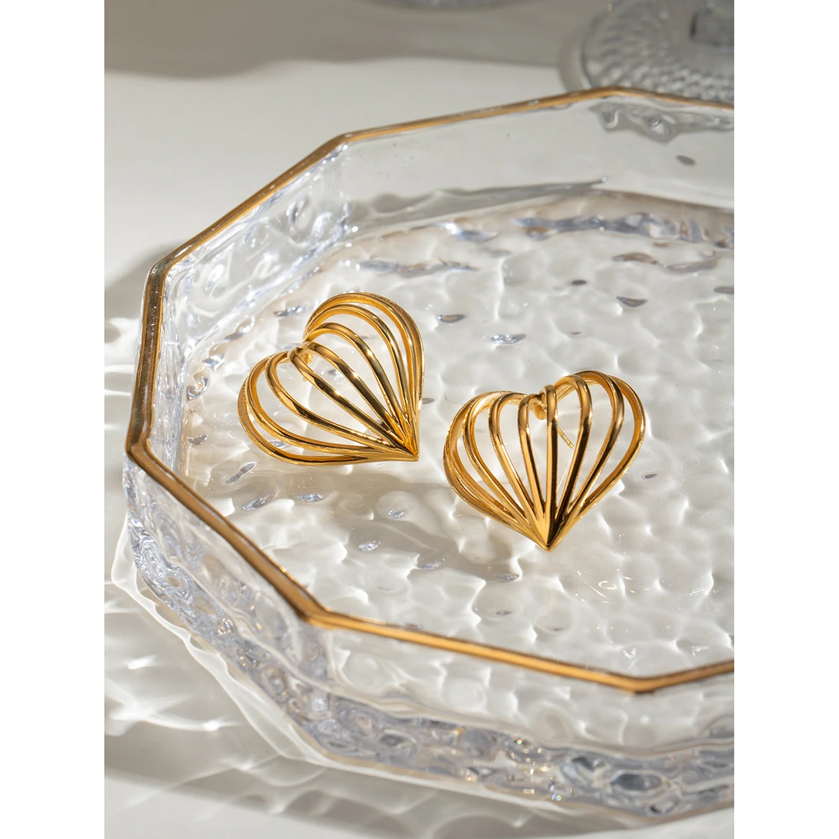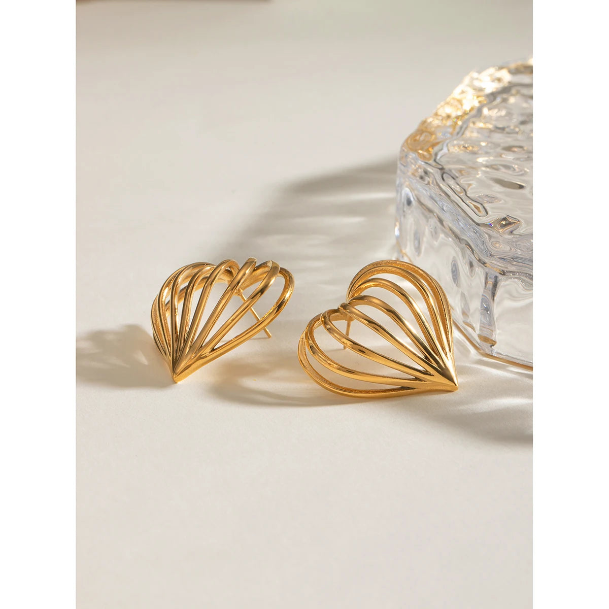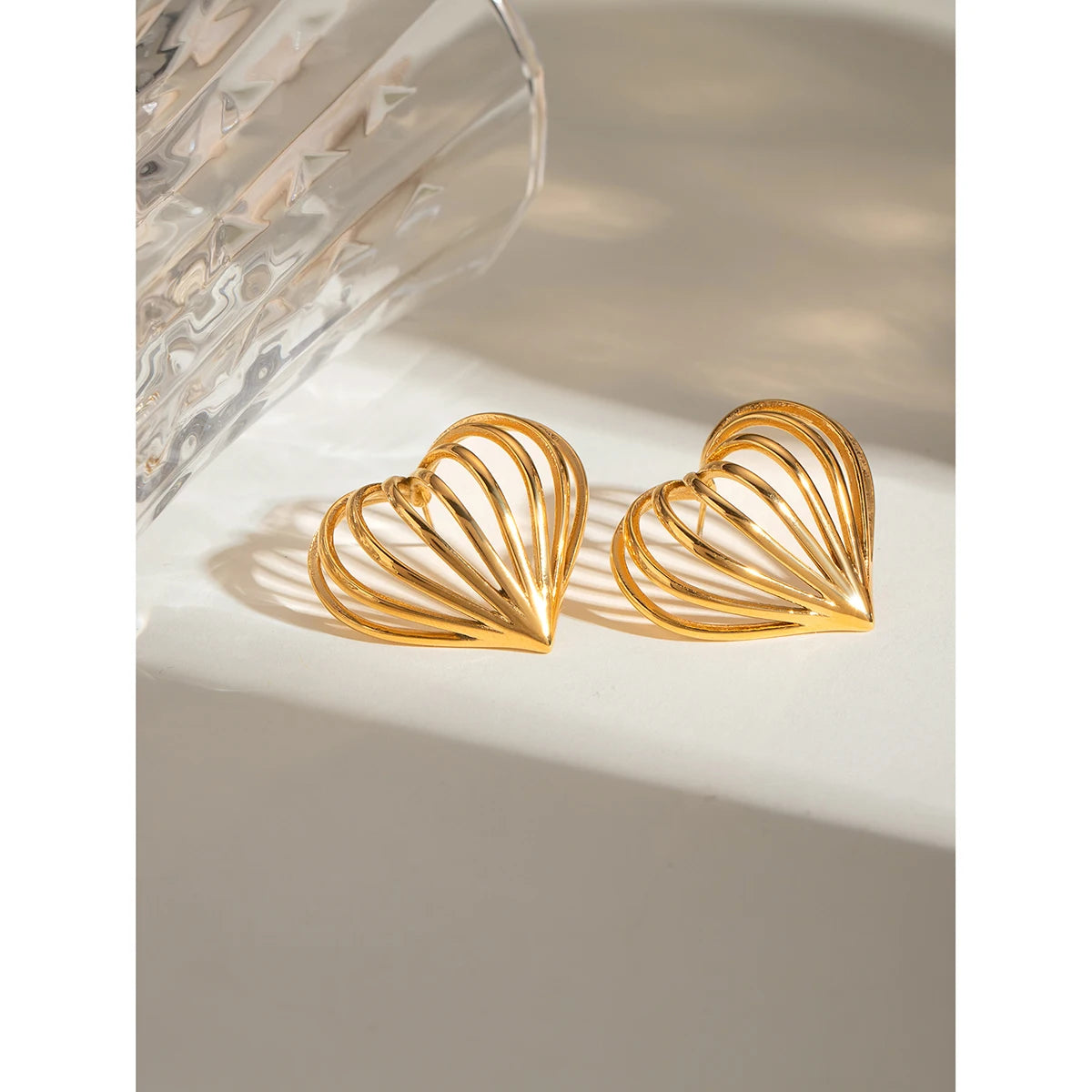 クリエイティブ ステンレススチール 18k ゴールドメッキ シンプル ラブハート形 カットアウトライン イヤリング パーソナライズ ジュエリー 魅力的な女性用