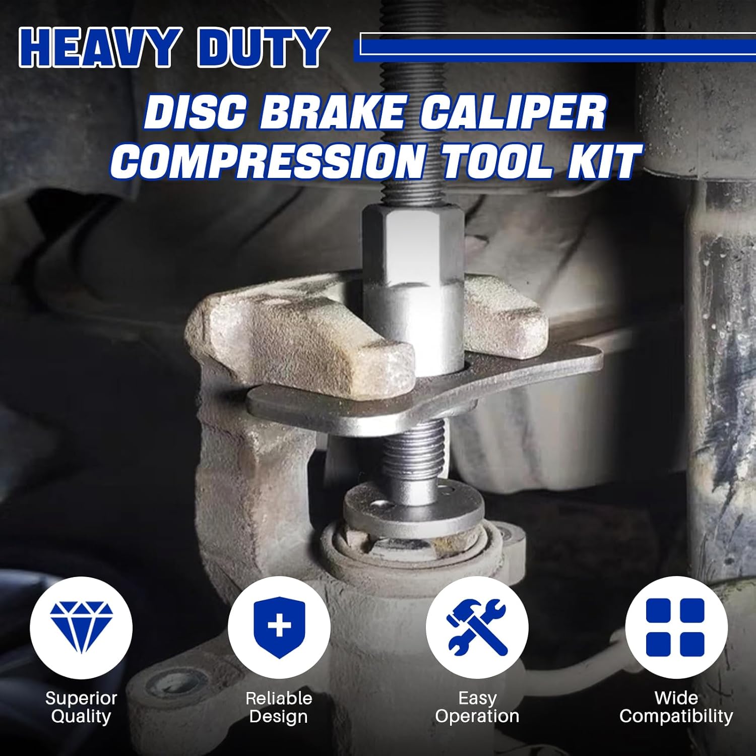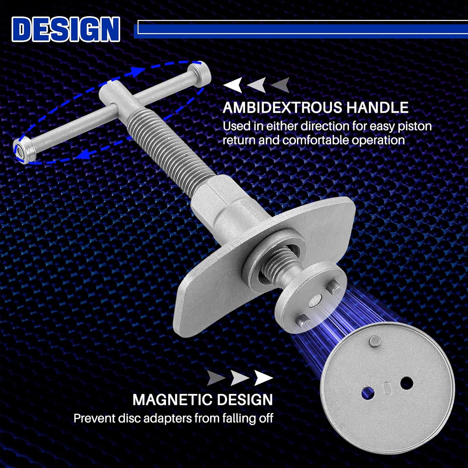 - Easy to Use: By attaching the plate to the handle, firstly choosing the appropriate disc adapter that matches your vehicle. Then effortlessly rotate the pistons back into their respective calipers, ensuring optimal pad clearance. Our disc brake caliper compression set includes a comprehensive instruction manual to providing added convenience.