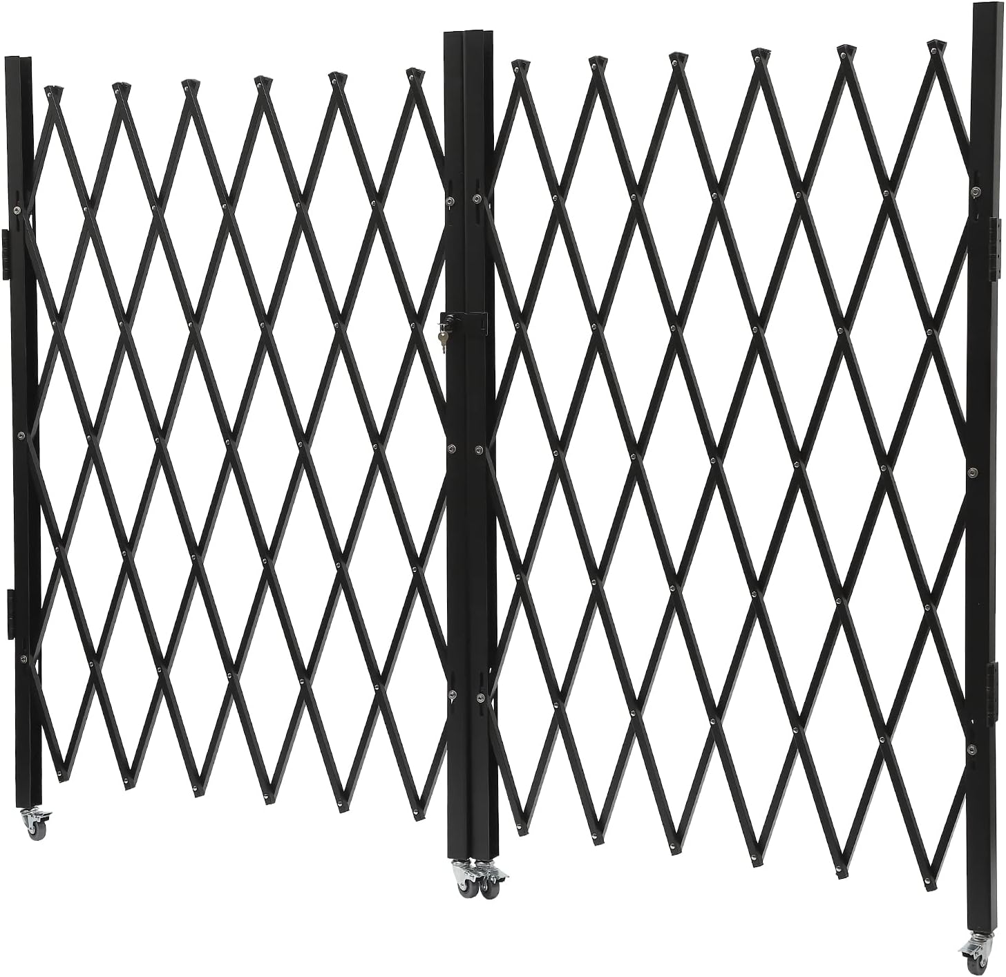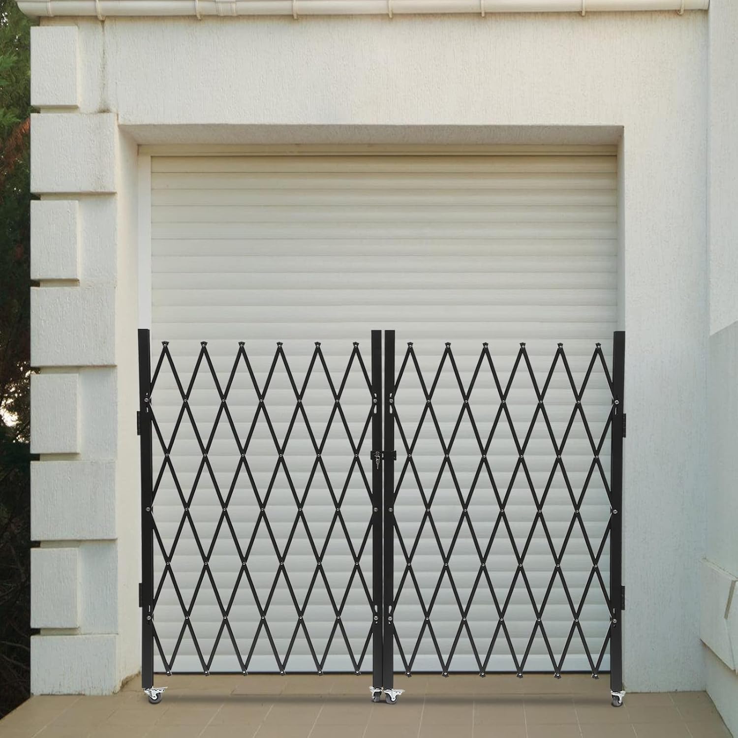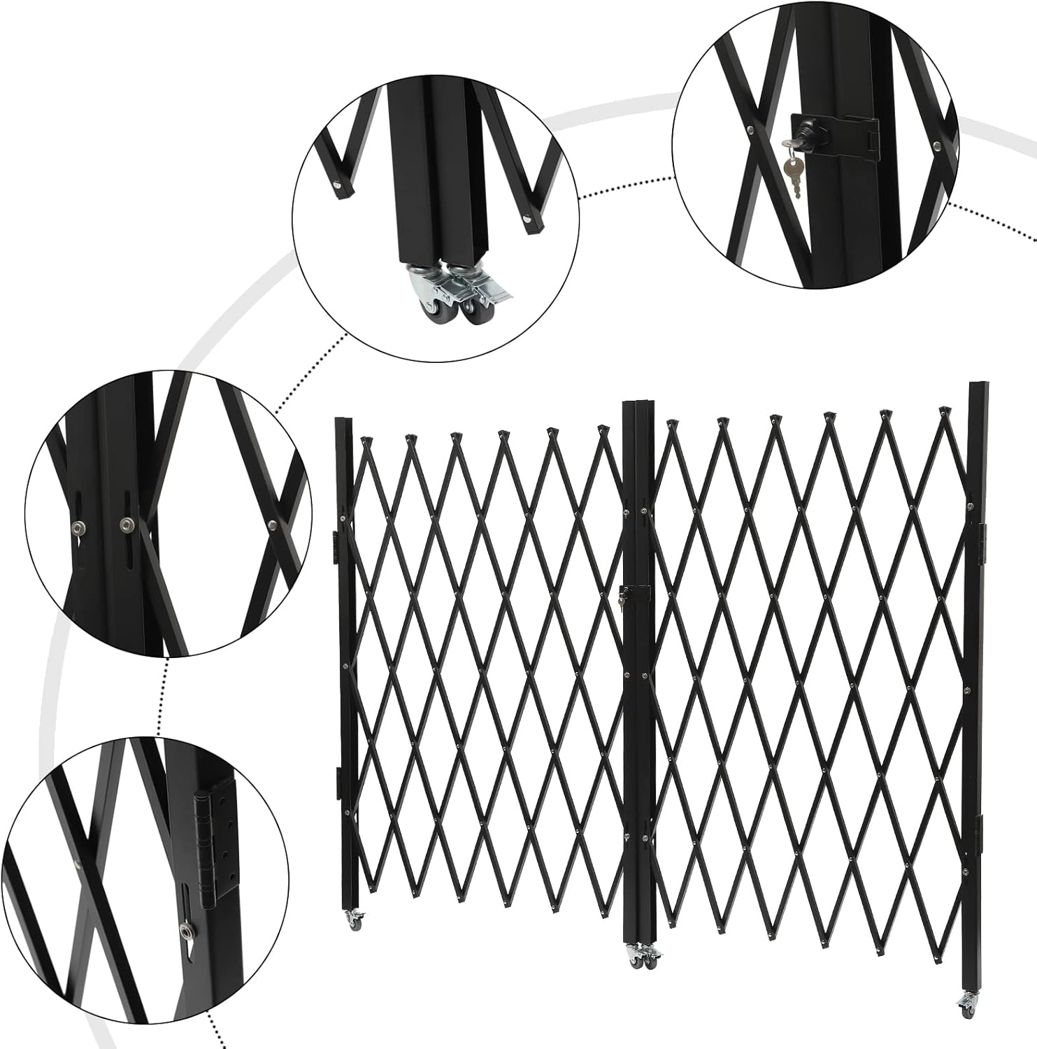 Double Folding Security Door, 5.25' H x 9.84' W Wall Mounted Scissor Gate - Iron & Aluminum Alloy Accordion Gate with 360 Rolling Barricade