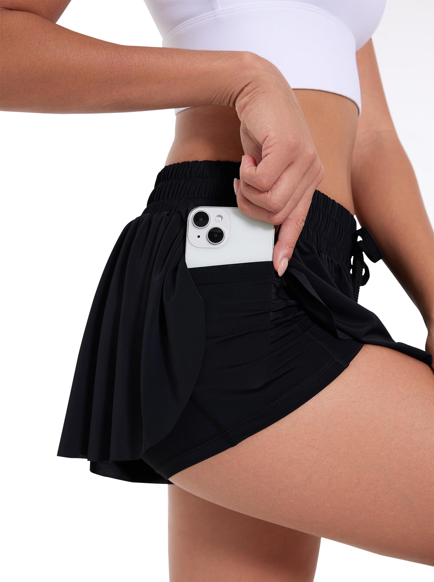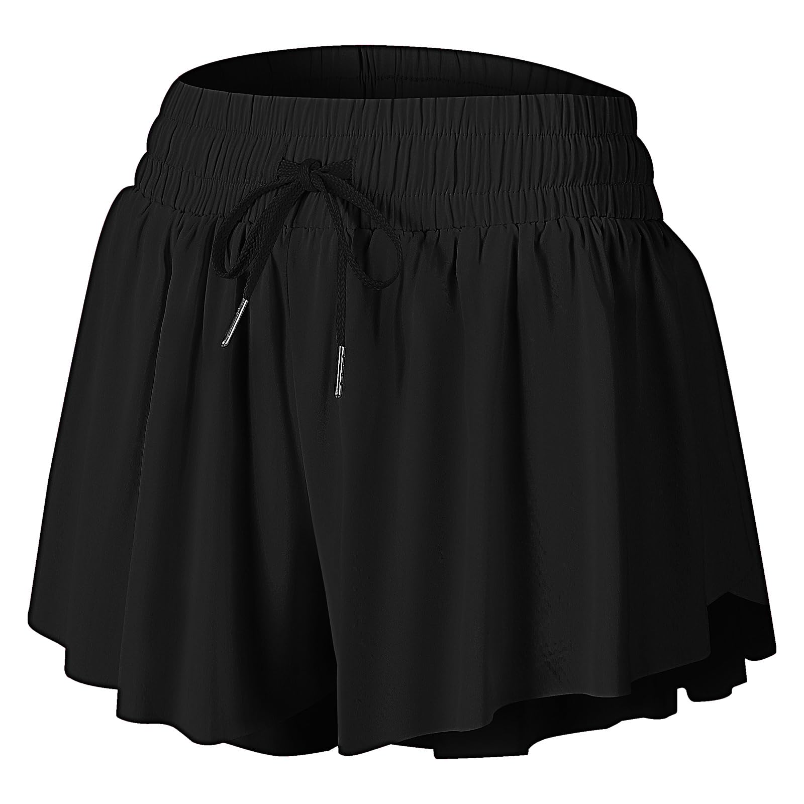 ECENOKL Flowy Athletic Shorts for Women Girls Butterfly Shorts Running Workout Gym Yoga Tennis Comfy Skort 2 in 1 Preppy Shorts with Pocket Cute Summer Clothes 011-Black-M