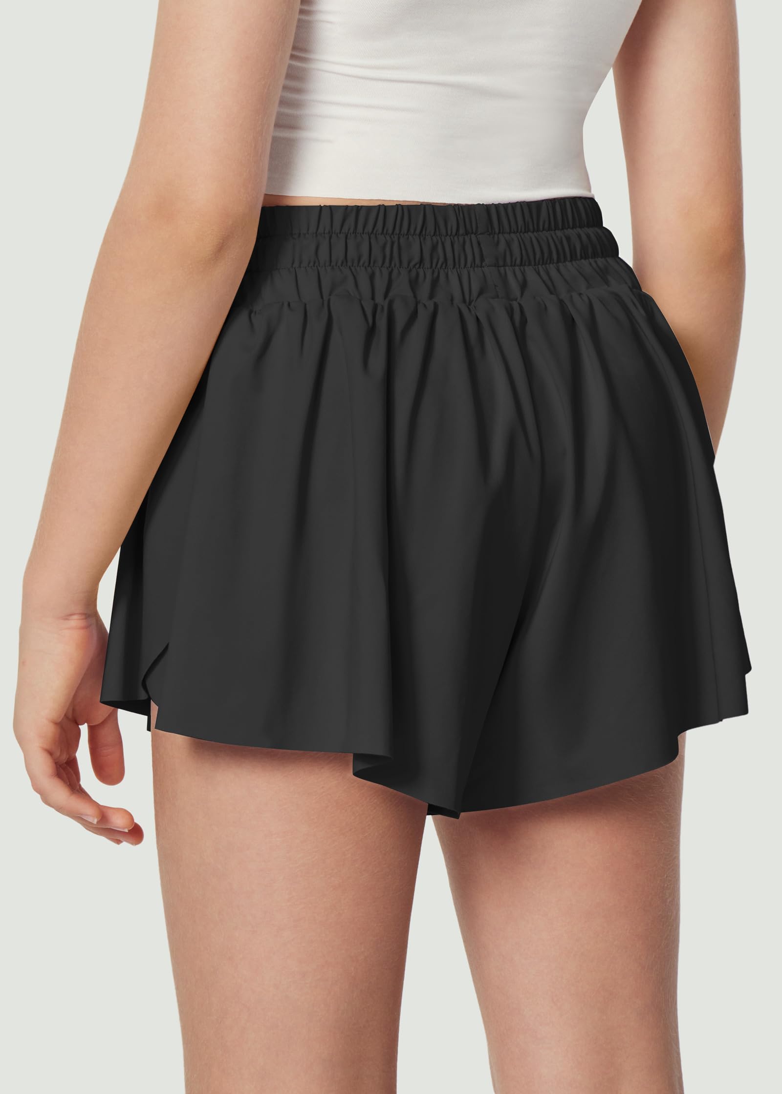 Ewedoos 2 in 1 Flowy Shorts Girls Butterfly Athletic Shorts Size 10-12 Cute Preppy Trendy Shorts Skirt for Teen Girls Black