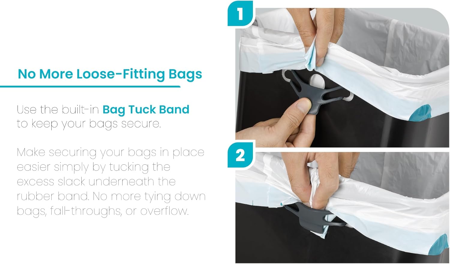 - Secure Bag Placement: Each removable inner bucket includes a rubber band; keeping your bags securely in place and preventing slippage