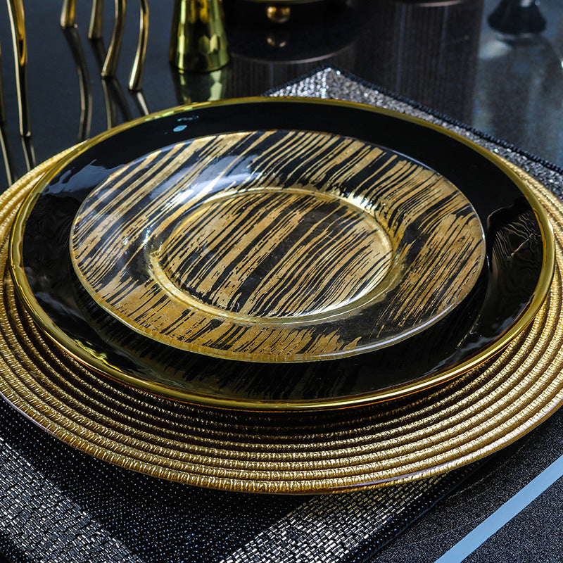 K: 10-inch golden rim glass plate 27cm