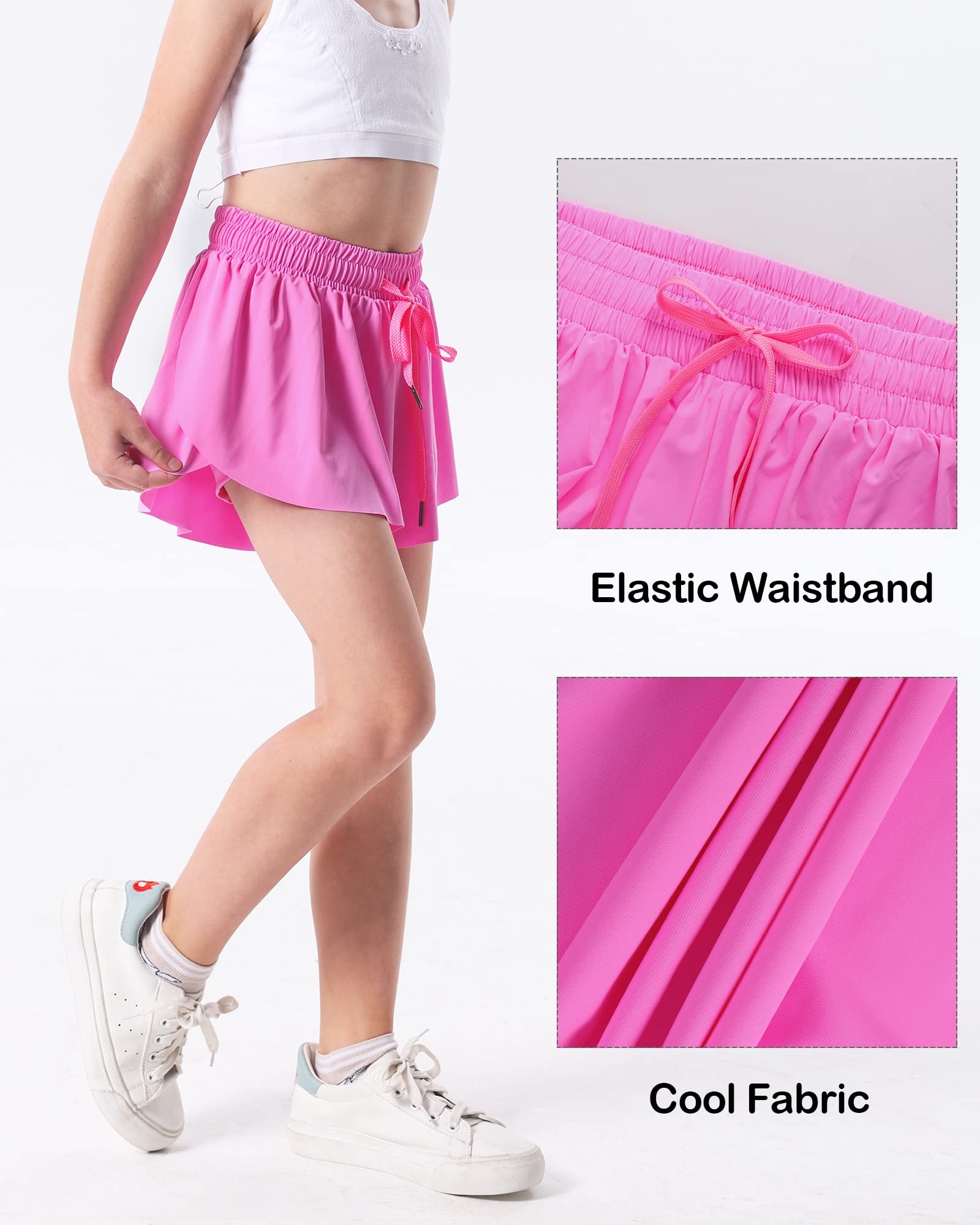 KEREDA Girls Flowy Shorts,Butterfly Shorts for Teen Girls with Spandex Liner 2-in-1 for Running,Gym,Athletic,Workout 1 Pack 7-8Y (Hot Pink)