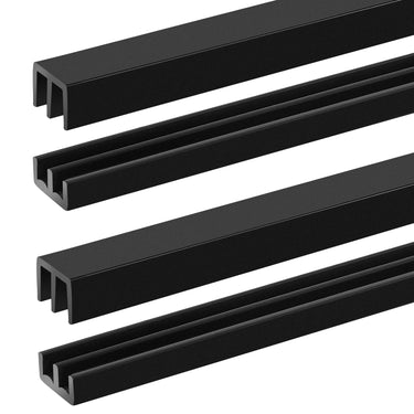 Landical 2 Sets 4FT Sliding Door Track for 1/8" Thick Panels Closet Glass Doors Plastic Cabinet Window Sliding Track (Black)