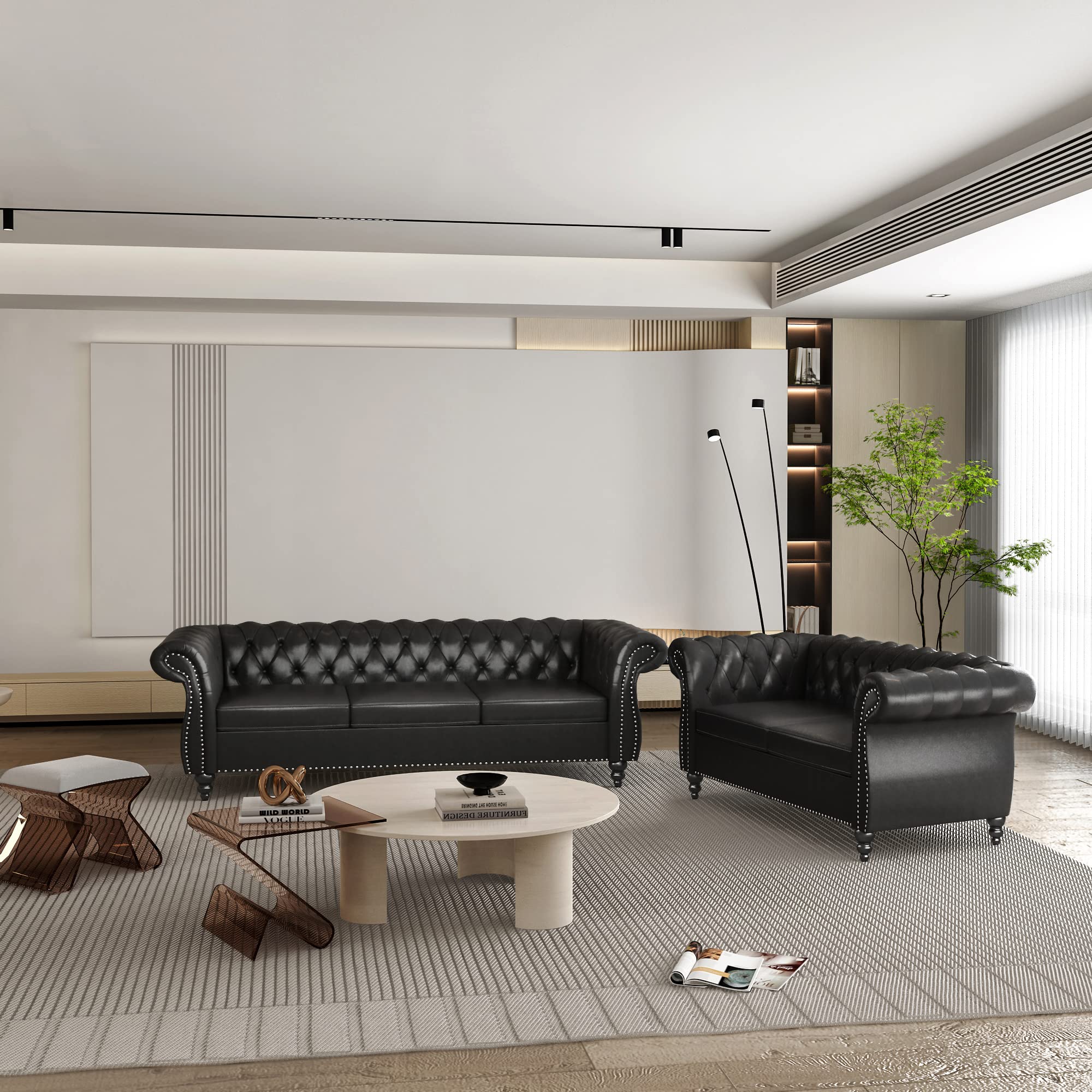 QHITTY 3 Piece Living Room Set, Sectional Chesterfield Sofa Chair Contemporary Upholstered Leather Loveseat Couch Sets for Living Room, Bedroom, Office