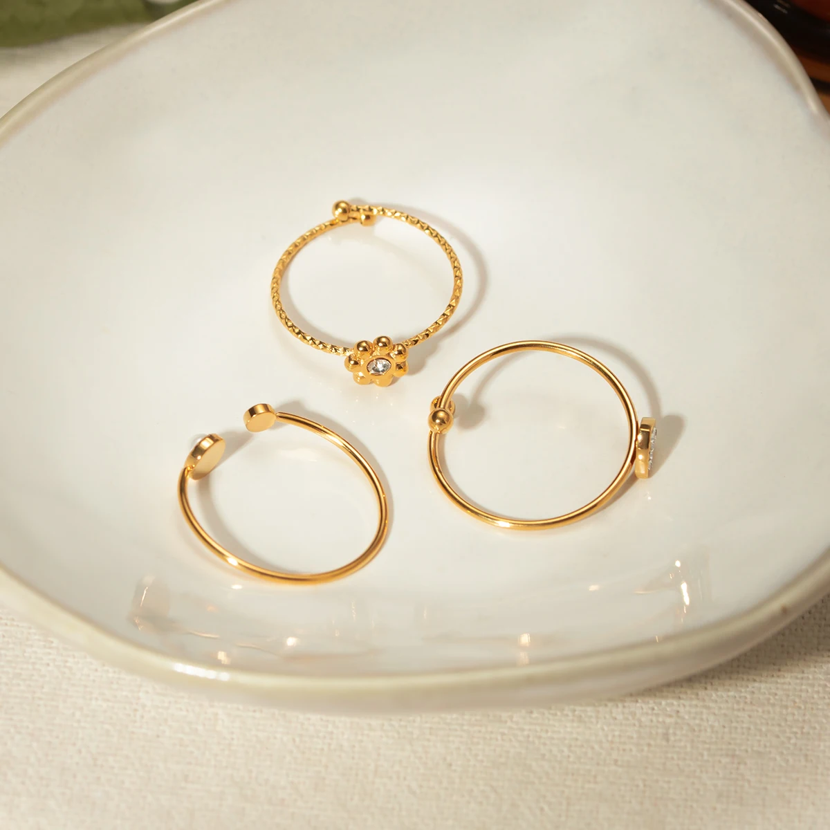ロマンチック ステンレススチール シンプル 3スタイル リングセット パーソナリティ 18K メタルテクスチャ 防水 トレンディ チャーム ジュエリー ギフト