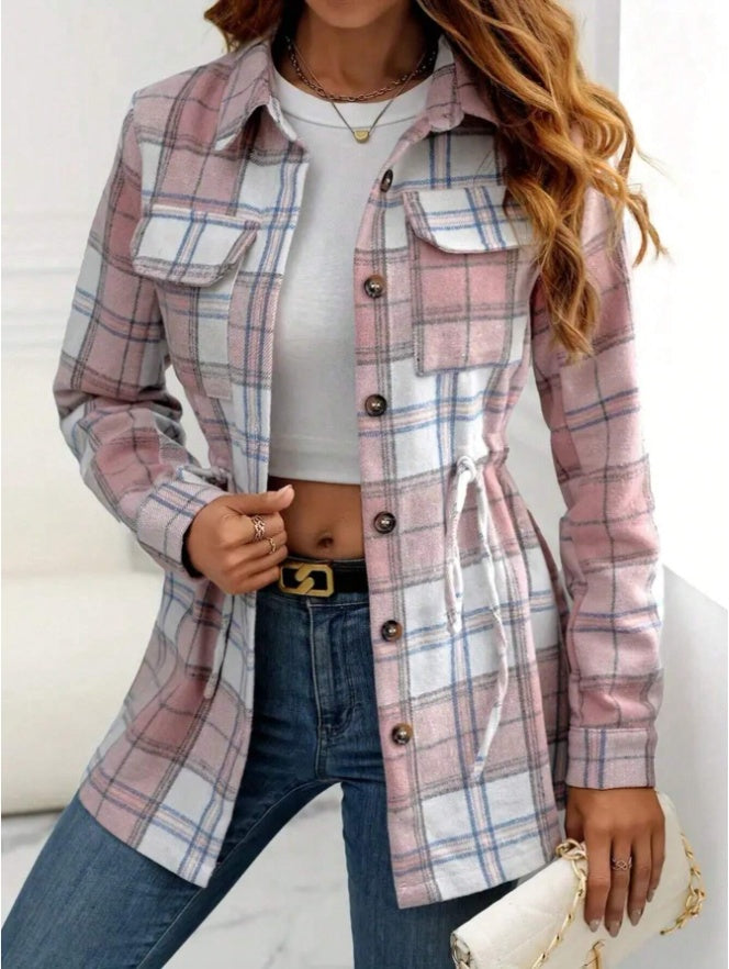 Women's Casual Vintage Plaid Front Button Loose Shirt For Spring Autumn