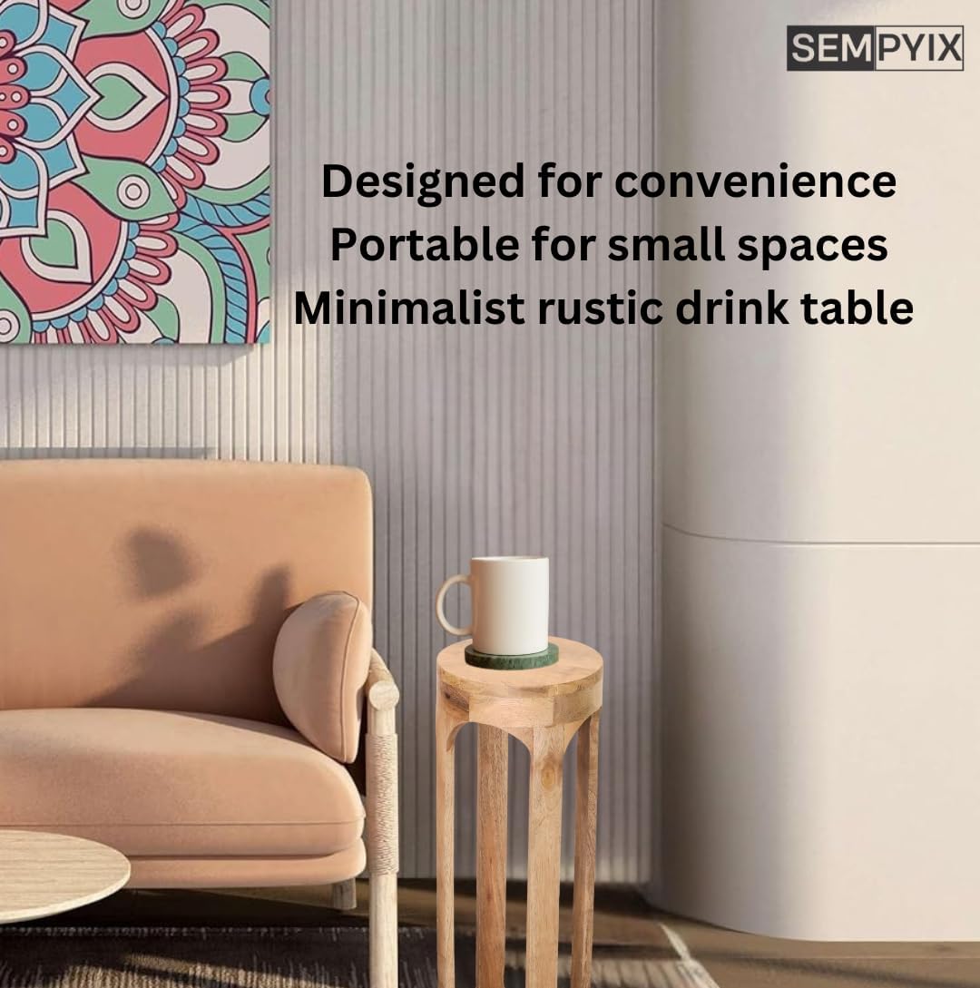 Wooden Round Drink Tables for Small Spaces 8x23 Bedroom Nightstand for Living Room Coffee Accent Pedestal, Modern Boho Decorative Display & Storages Stand for Plant (Natural)