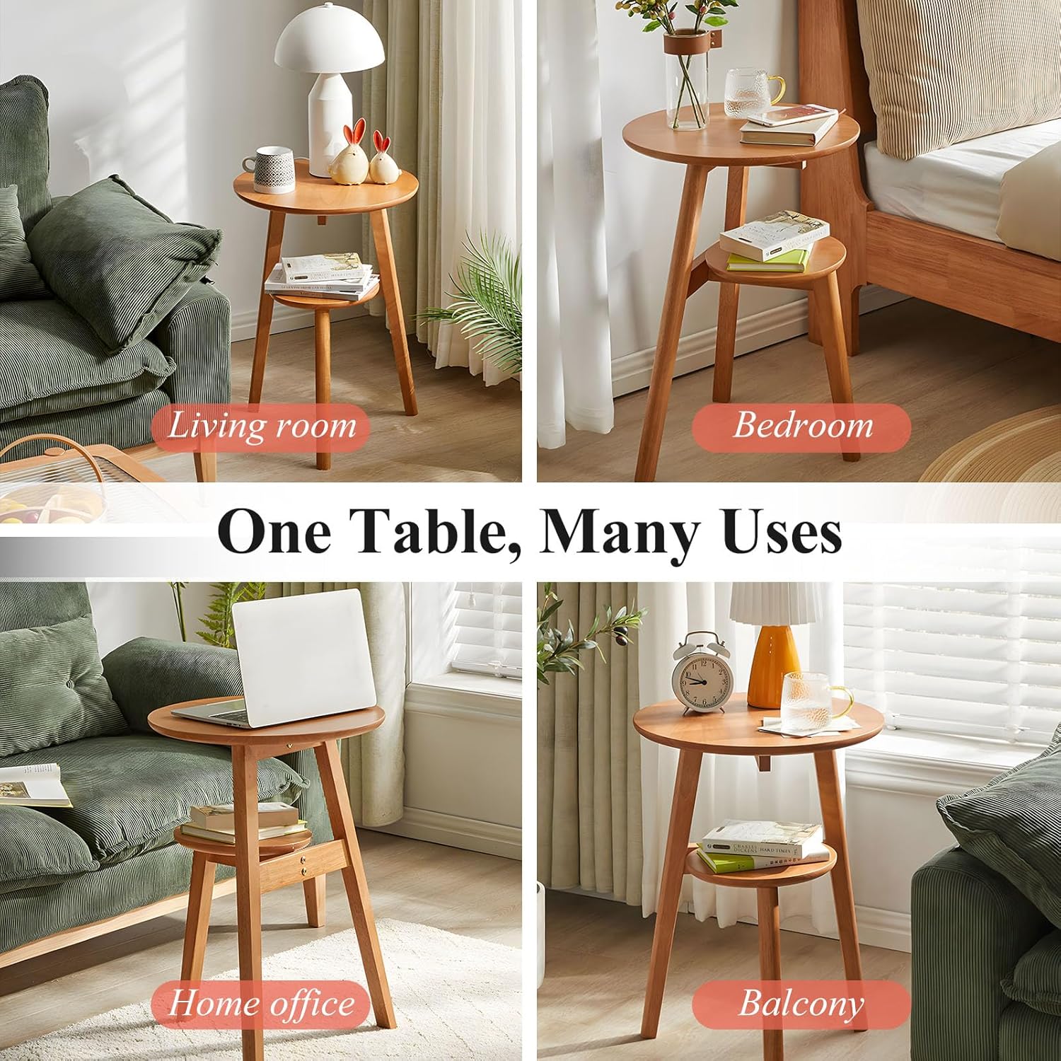 Side Table, 2-Tier Round End Tables Living Room, Mid Century Modern Side Table, Round Nightstand, Oak Accent Table, Small Round Coffee Table, 16.54" Dia.x 23.62" H(Natural)