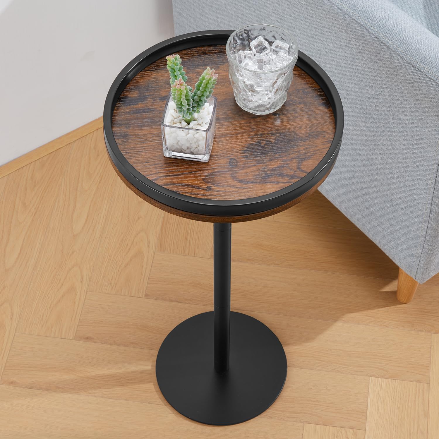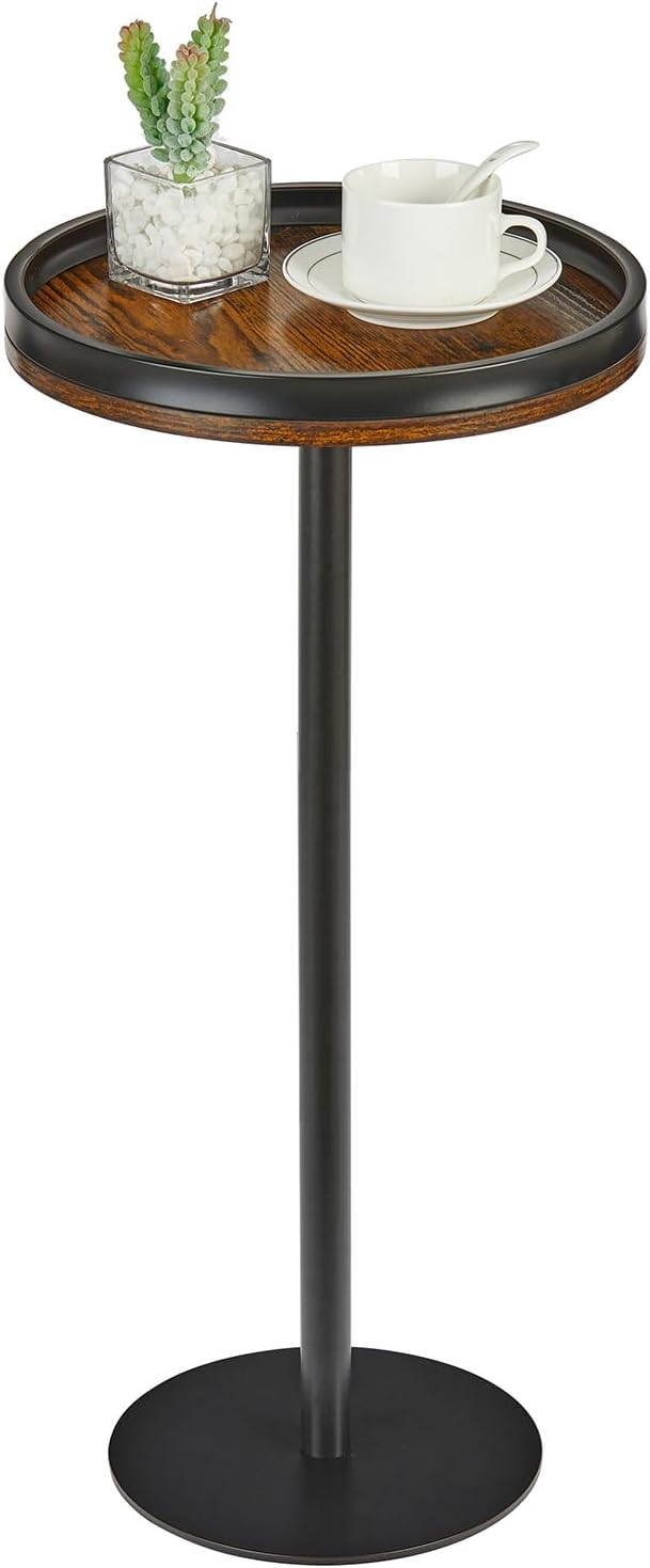 Round Drink Table,Small Pedestal Table,Small Round Side Table for Narrow Spaces,Martini Table for Living Room, Bedroom, Bathroom,Balcony (Rustic Brown)